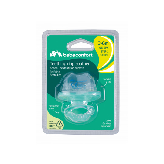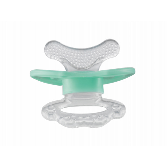 Kousátko ve tvaru šidítka uleví dětským dásním při prořezávání prvních zoubků. Měkký silikonový materiál jemně masíruje citlivé dásně. Víčko umožňuje hygienické přenášení. Kousátko neslouží jako šidítko pro potřebu sání dítěte. Vhodné pro děti od 3 do 6 měsíců.