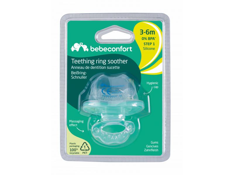 Kousátko ve tvaru šidítka uleví dětským dásním při prořezávání prvních zoubků. Měkký silikonový materiál jemně masíruje citlivé dásně. Víčko umožňuje hygienické přenášení. Kousátko neslouží jako šidítko pro potřebu sání dítěte. Vhodné pro děti od 3 do 6 měsíců.