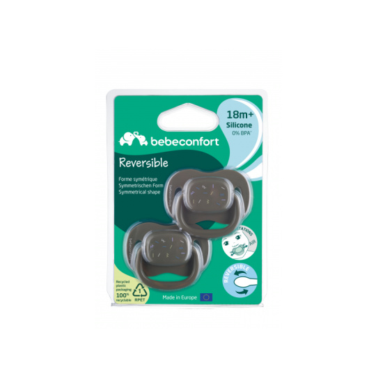 Šidítko se symetrickou savičkou z měkkého silikonu. Vnější část šidítka má otvory pro cirkulaci vzduchu, aby nedošlo k podráždění citlivé pokožky kolem úst. Balení obsahuje 2 kusy. Vhodné pro děti od 18 měsíců. Neobsahuje BPA.