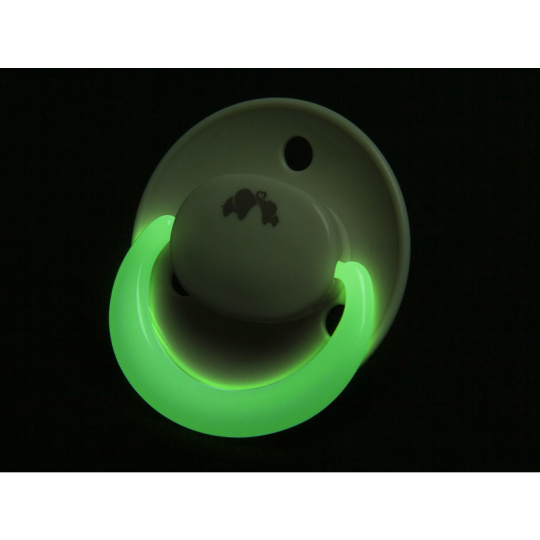 Šidítko se symetrickou savičkou z měkkého silikonu. Vnější část šidítka má otvory pro cirkulaci vzduchu, aby nedošlo k podráždění citlivé pokožky kolem úst. Kroužek šidítka ve tmě světélkuje, takže jej snadno najdete i v noci v postýlce. Balení obsahuje 2 kusy. Vhodné pro děti od narození. Neobsahuje BPA.