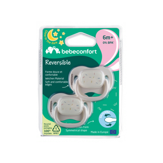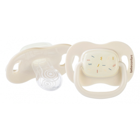 Šidítko se symetrickou savičkou z měkkého silikonu. Vnější část šidítka má otvory pro cirkulaci vzduchu, aby nedošlo k podráždění citlivé pokožky kolem úst. Šidítko ve tmě světélkuje, takže jej snadno najdete i v noci v postýlce. Balení obsahuje 2 kusy. Vhodné pro děti od 6 měsíců. Neobsahuje BPA.