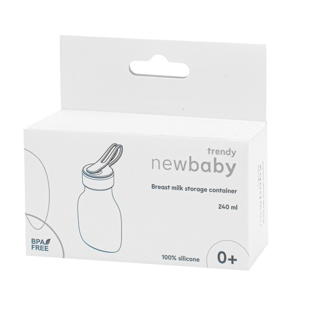 Silikonový zásobník na mateřské mléko značky New Baby z řady Trendy spojuje moderní minimalistický design s praktickým využitím pro každodenní potřeby maminek.