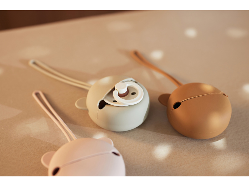 Originální silikonové pouzdro na šidítko ve tvaru medvídka pomáhá udržet šidítko hygienicky čisté a vždy na dosah. Pouzdro snadno připevníte na přebalovací tašku, abyste měli šidítko po ruce kdykoli potřebujete. Složení: 100% silikon Rozměry: 7 x 4 x 19 cm