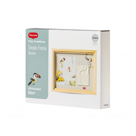 Dřevěný rámeček Tiny Creations Simple Frame nabízí prostor pro fotografii a otisk ručičky nebo nožičky Vašeho miminka. Vyrobte si krásnou dekoraci, která vám zároveň pomůže uchovat vzpomínky na krásné období po narození vašeho dítěte. Použití dle přiloženého návodu je jednoduché, rychlé a bez nepořádku. Balení obsahuje rámeček a vše, co potřebujete k výrobě otisku. Výrobek je dermatologicky testován a je pro vaše dítě 100% zdravotně nezávadný.