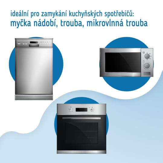 Ochranu lze použít jako zámek proti otevření dvířek trouby, skříněk, jako zámek na mikrovlnné trouby, myčky nádobí, pračky nebo jiné vybavení.
