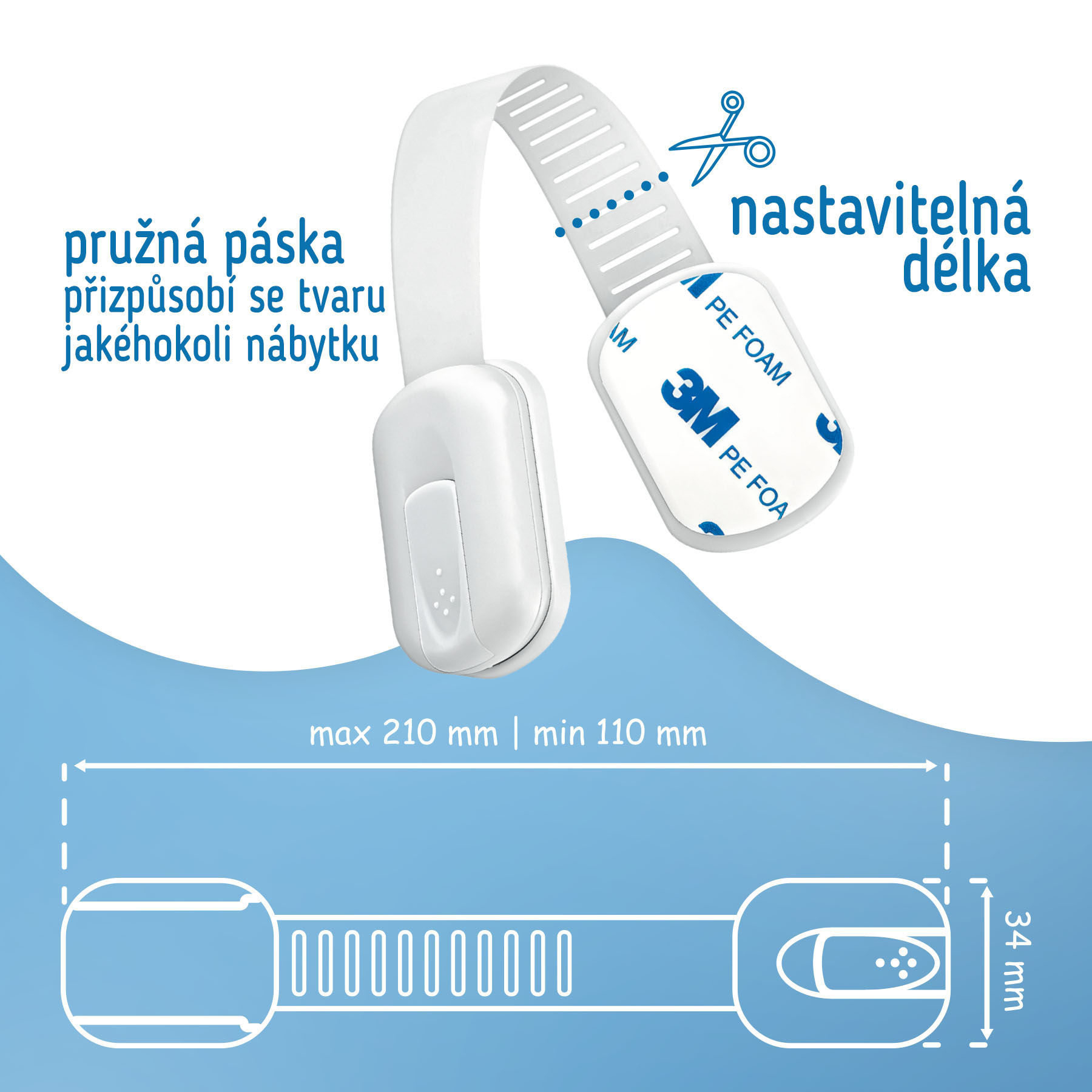 Univerzální použití – nastavitelná délka, díky níž se bezpečnostní pomůcka hodí téměř ke všem domácím spotřebičům a nábytku jakékoli velikosti.