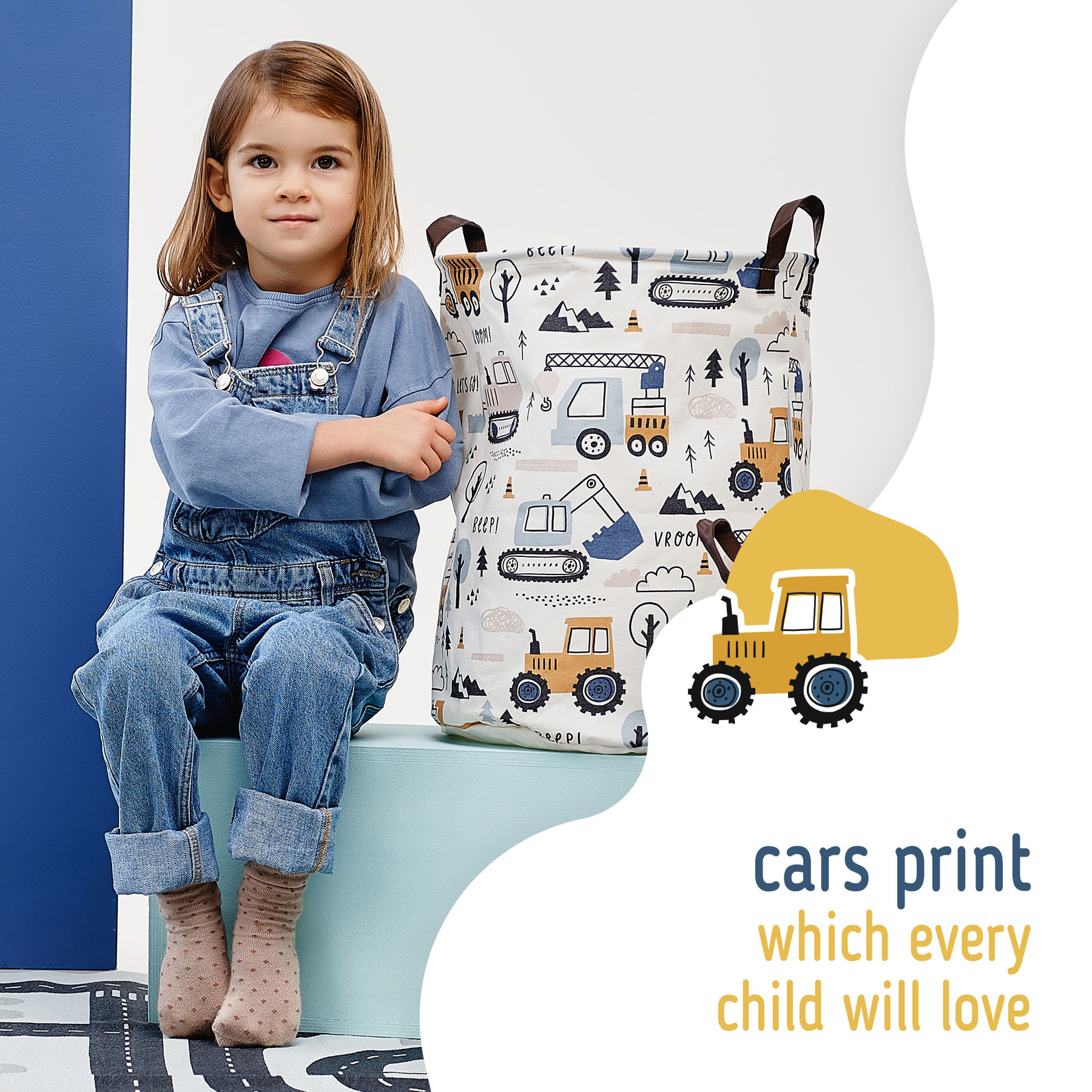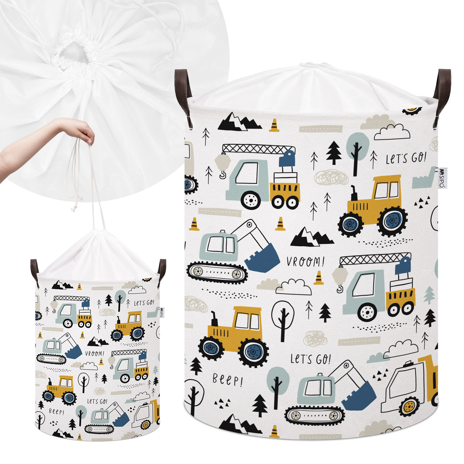 Sipo Koš na hračky se šňůrkou, skládací bavlněný / 43 l, Mini Trucks