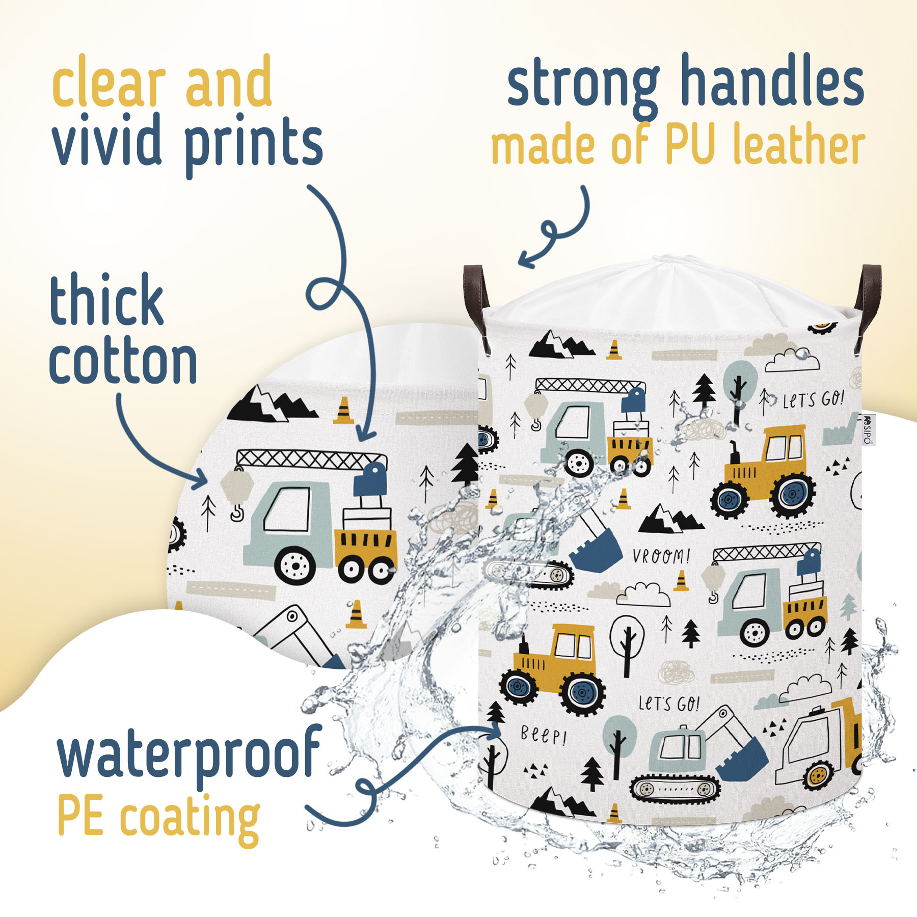 Díky speciální voděodolné vrstvě jsou Sipo koše vhodné pro všestranné využití. Ochranná PE vrstva funguje dvojím způsobem – nepropouští vnější vlhkost a chrání tak obsah koše a zároveň zabraňuje protékání, pokud dovnitř vložíte mokré prádlo.