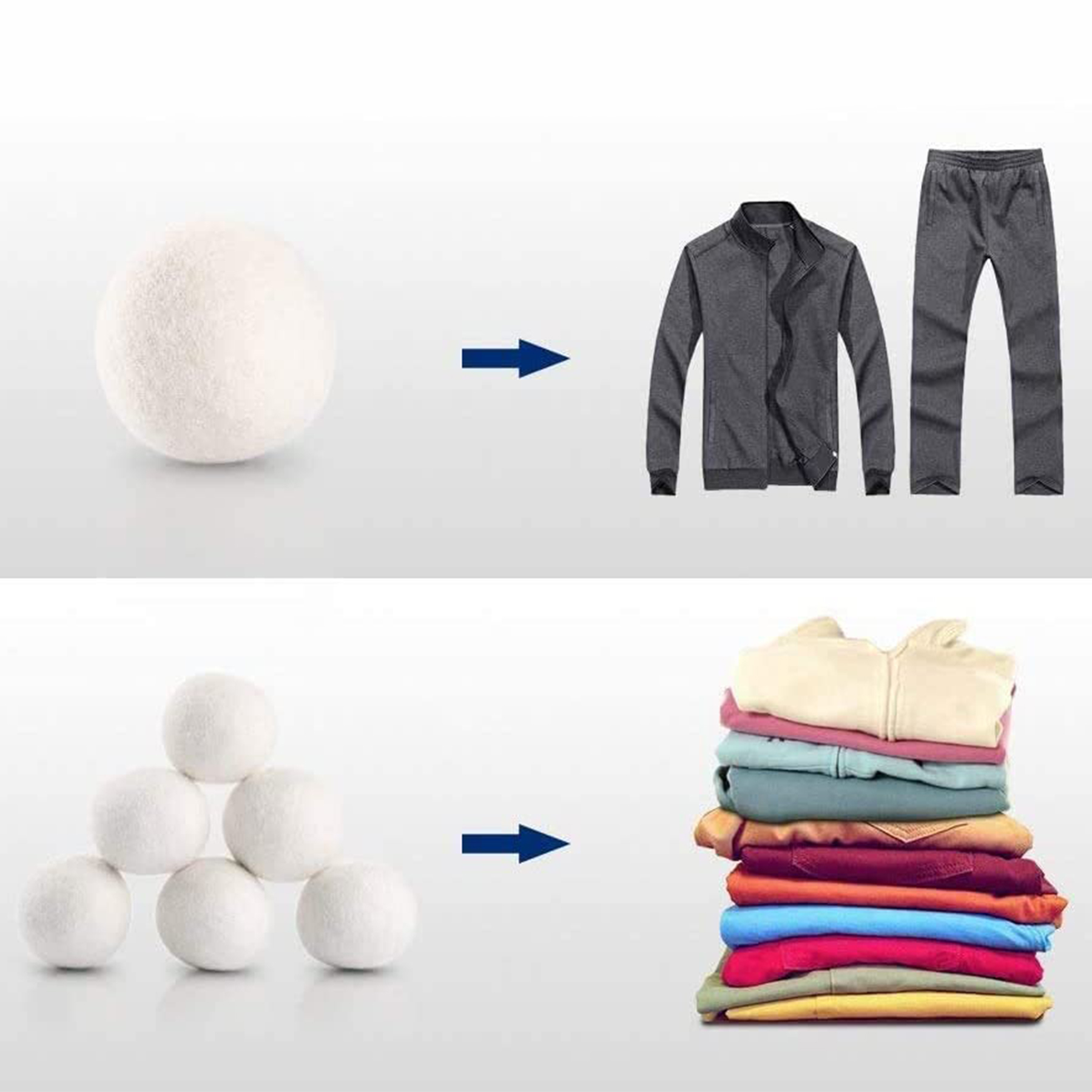 Koule do sušičky z přírodní ovčí vlny, 6 ks v balení. Zkracují dobu sušení až o 40 %. Snižují tvorbu záhybů a minimalizují statickou elektřinu. Hypoalergenní – bezpečné i pro citlivou dětskou pokožku.