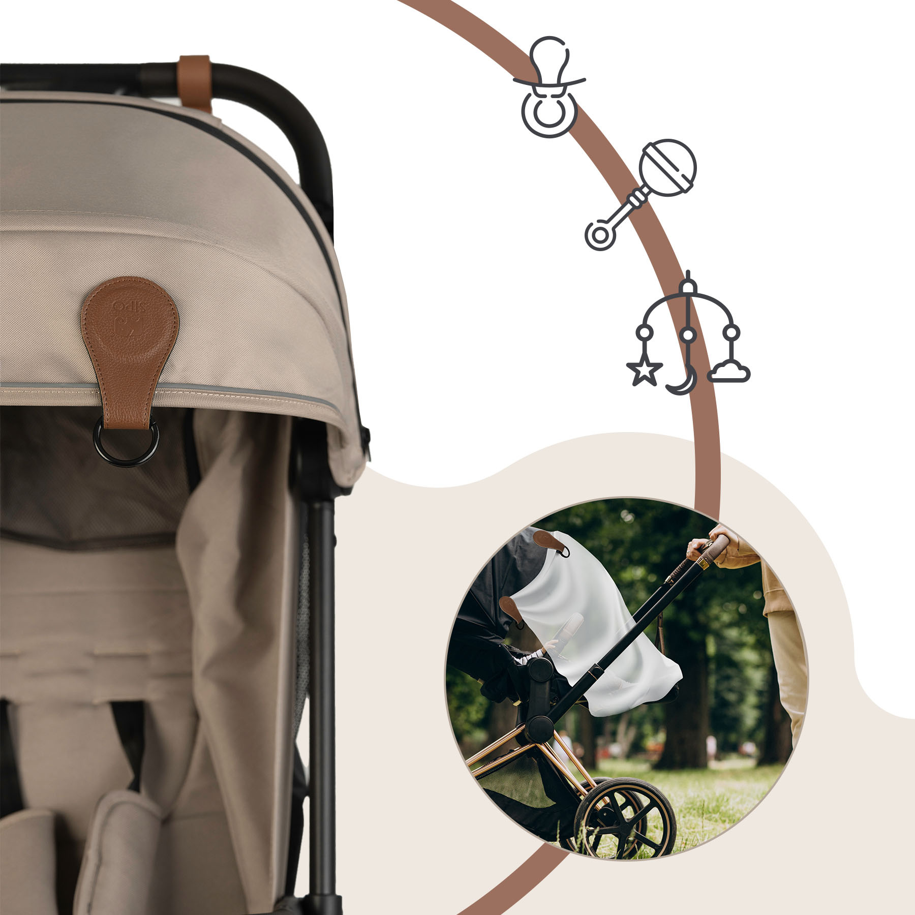 Praktické klipy pomáhají udržovat pořádek, chrání produkty před pádem, znečištěním nebo ztrátou. Díky kompatibilitě s různými povrchy – rámem kočárku, stříškou, madlem – nabízí vysokou univerzálnost.