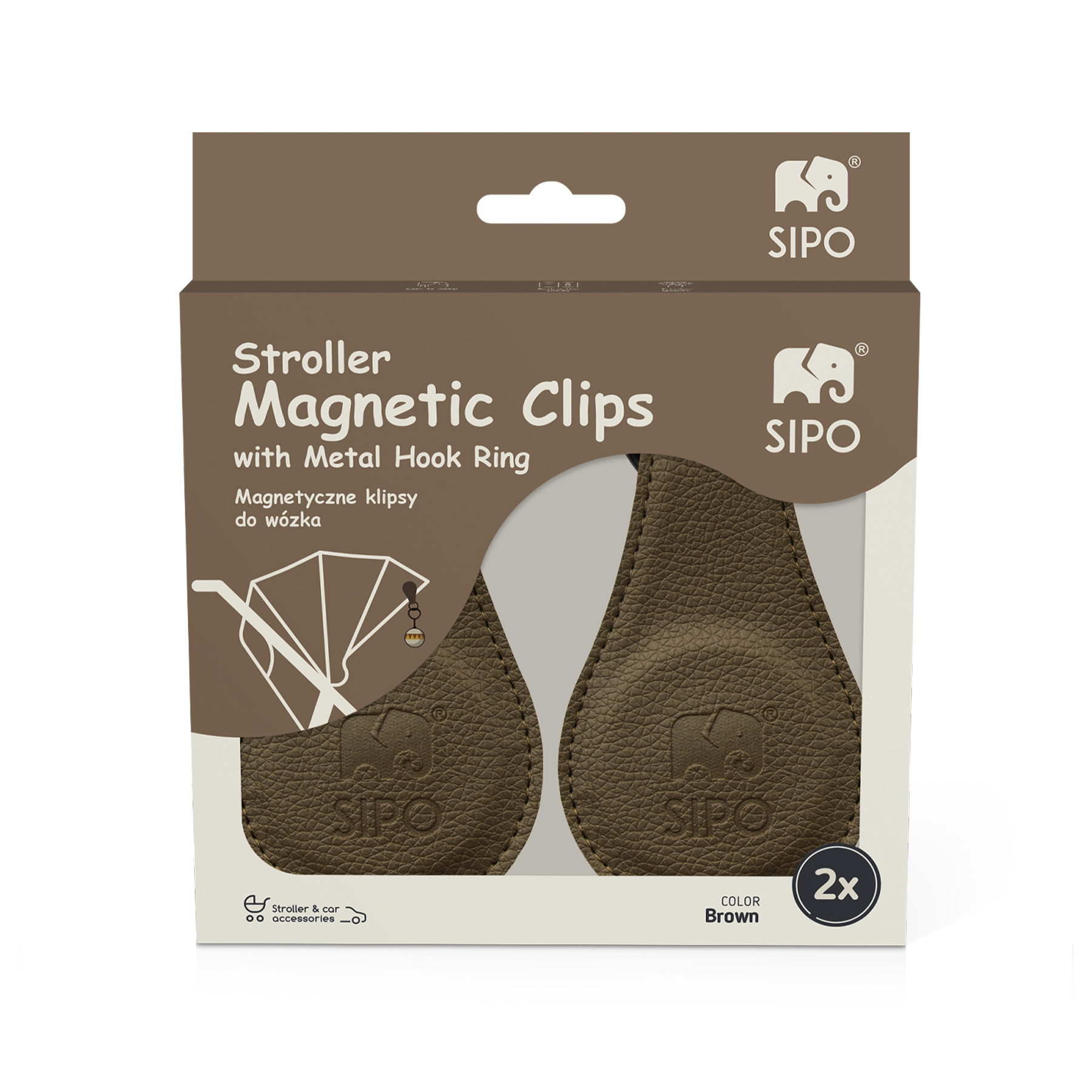 Sipo Magnetické klipy na kočárek, 2ks, hnědá