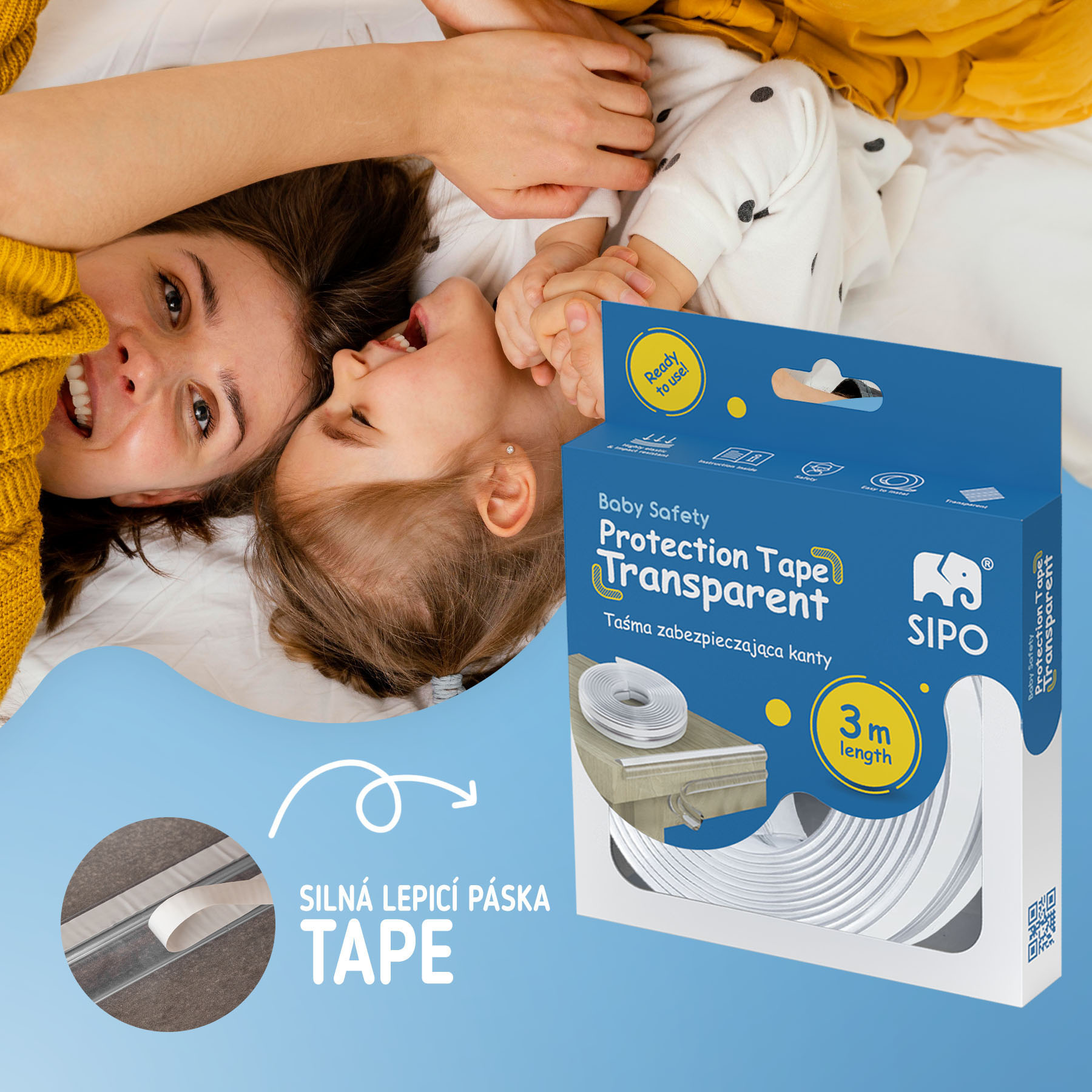 Ochranná páska je široce používaný bezpečnostní prvek díky materiálu a měkkosti. Lze ji použít k ochraně desek stolů, skříní, schodů a všech dalších prvků, které mají ostré hrany a mohly by tak představovat bezpečnostní riziko pro vaše děti.