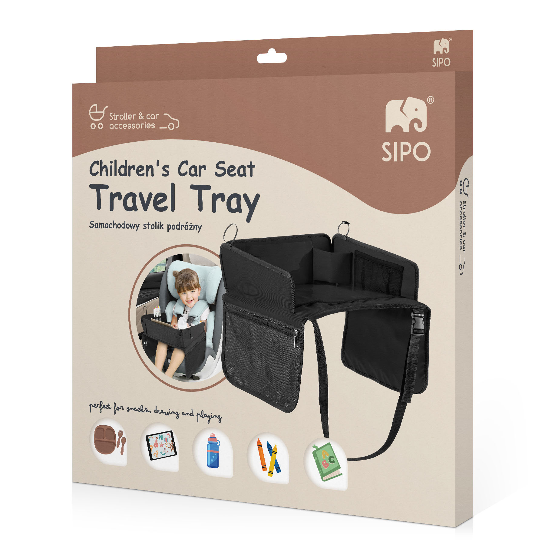 SIPO cestovní skládací stolek je kompaktní a praktické řešení určené k uspořádání prostoru kolem vašeho dítěte během cestování. Je vyroben z odolného polyesteru odolného proti skvrnám, snadno se čistí a je vysoce odolný proti každodennímu používání. Stolek má skládací pracovní plochu s funkcí suchého mazání, takže děti mohou kreslit fixami a poté je smazat, aniž by zanechaly stopy.