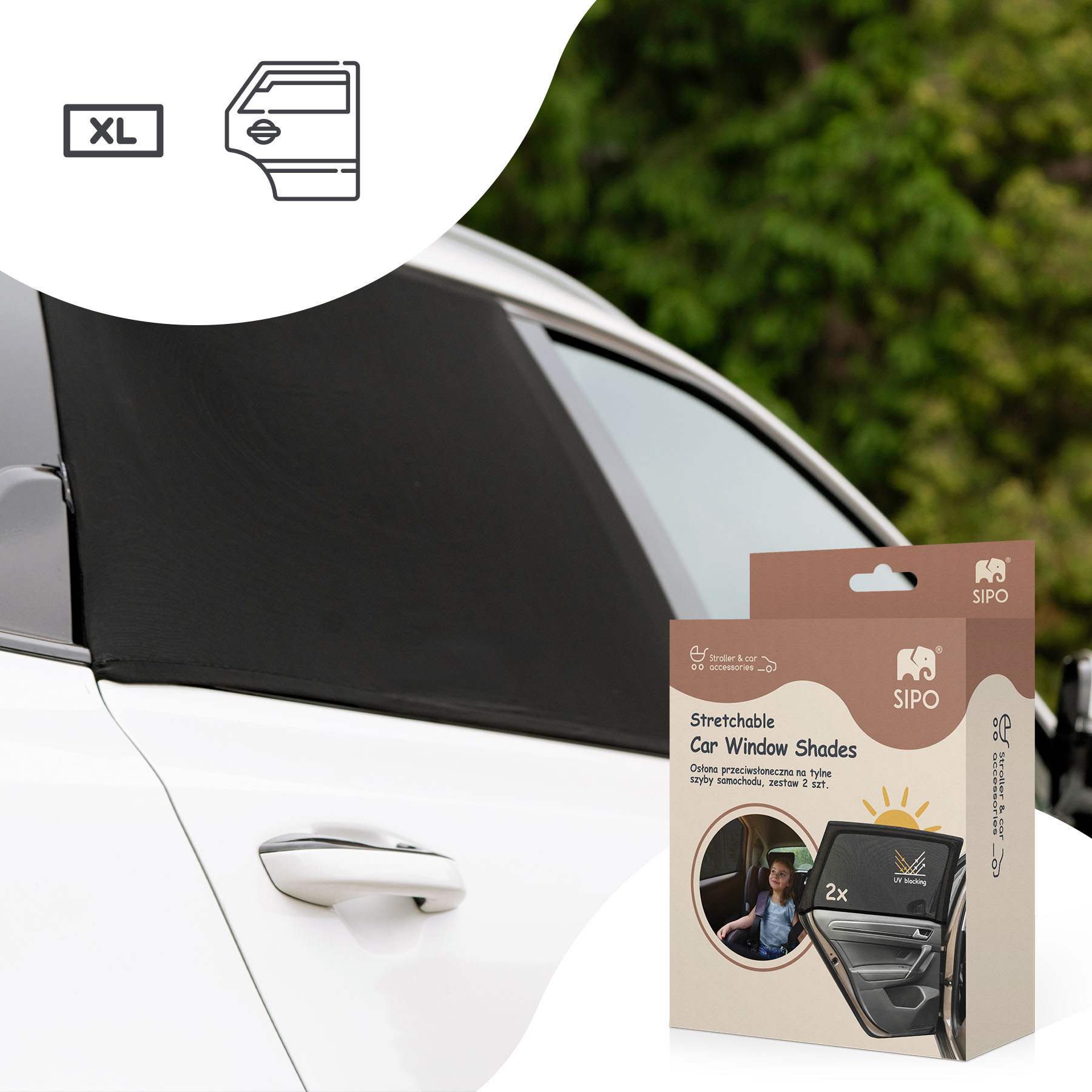 Sipo XL sluneční clona do auta, strečová, 2ks