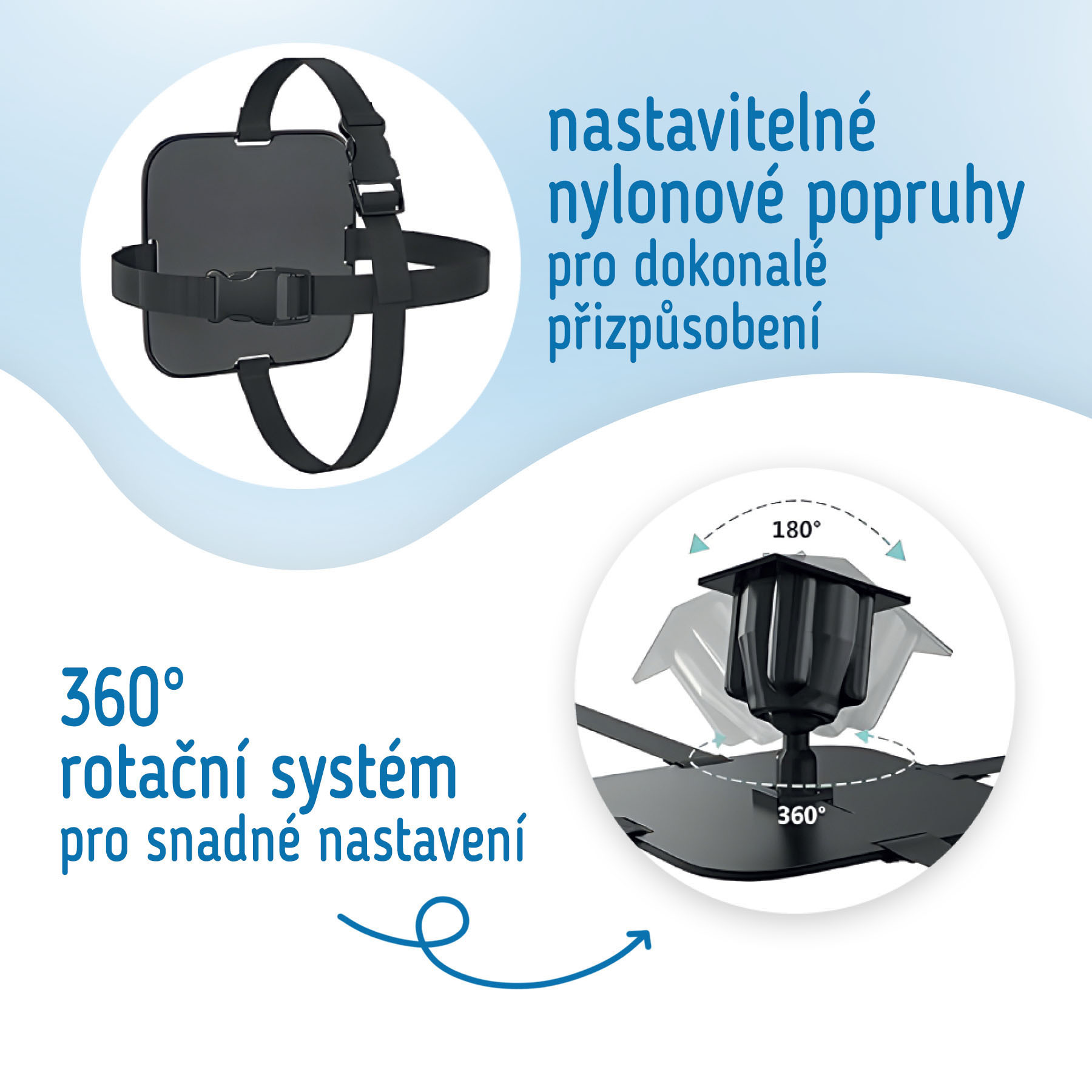 Zrcátko se snadno instaluje na opěrku hlavy sedadla vozidla. Veškeré potřebné montážní příslušenství je součástí balení. Možnost nastavení sklonu vám zajistí ten nejlepší výhled na vaše děťátko – ať už jste řidič nebo spolujezdec.