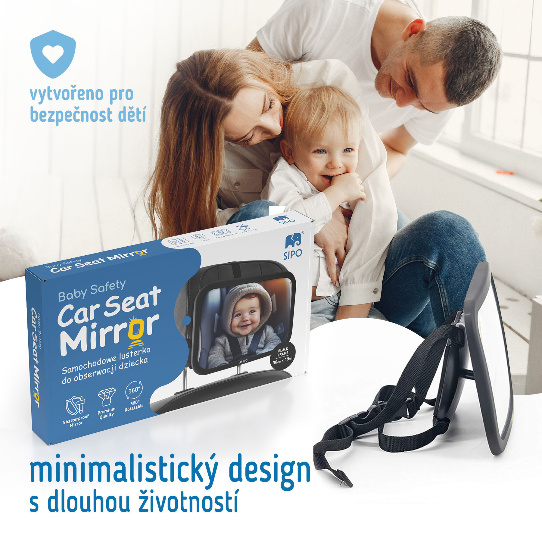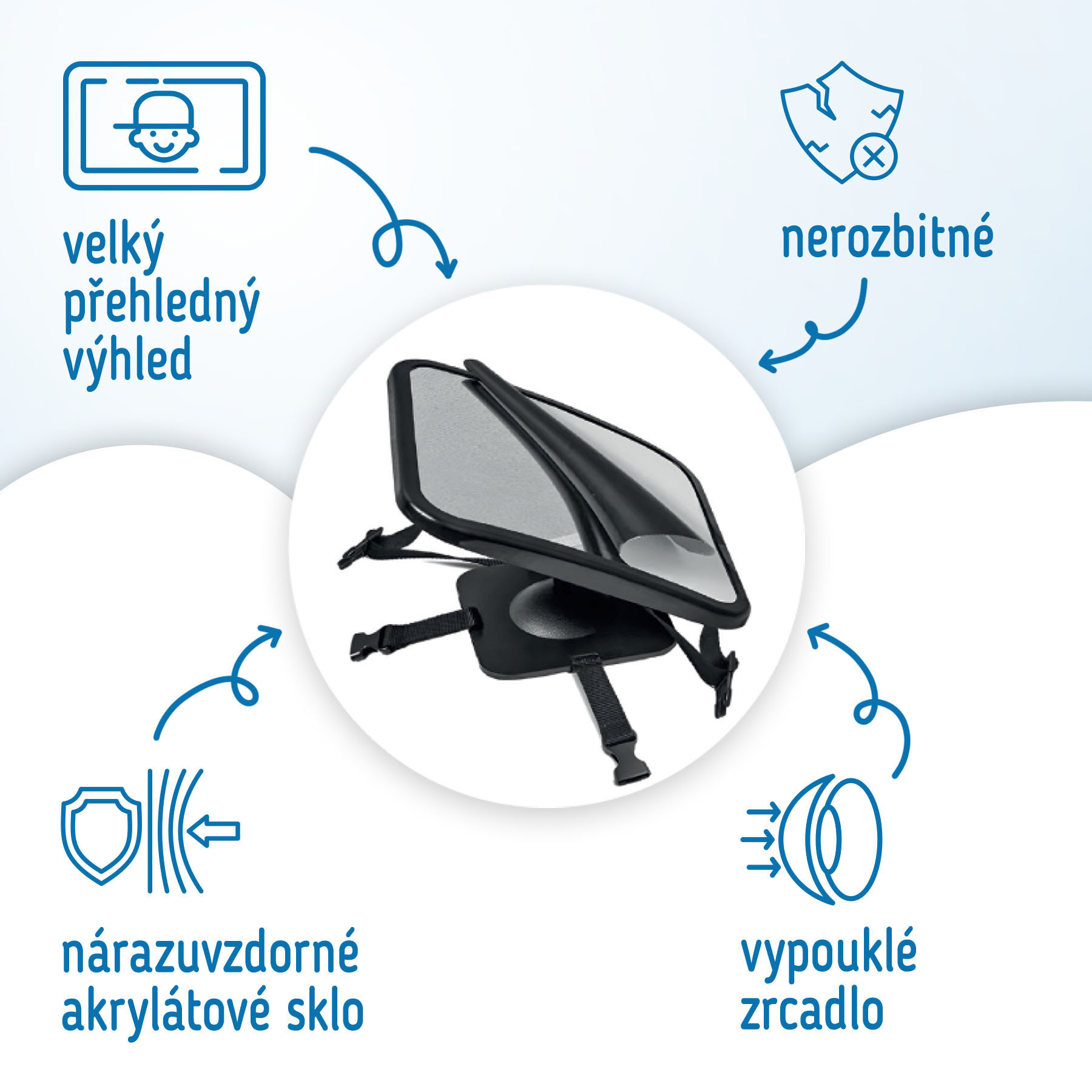 Bezpečnostní zrcátko do auta je nepostradatelným pomocníkem při cestování s malými dětmi. Díky zrcátku budete mít své maličké bezpečně pod dohledem – žádné nebezpečné otáčení a stejně tak bude mít vaše děťátko výhled na vás.