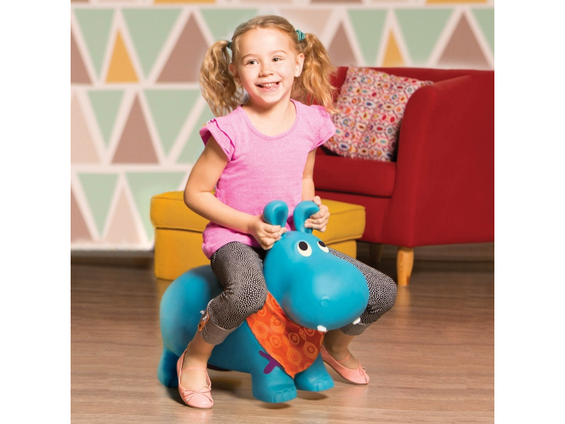 Nafukovací skákací hroch pro děti ergonomického tvaru s ušimay, která slouží jako držadla, umožní dětem objevovat kouzlo skákání. Součástí výrobku je i nafukovací pumpička. Rozměry: 60 x 42 x 32 cm Vhodné pro děti od 18 měsíců do 5 let.