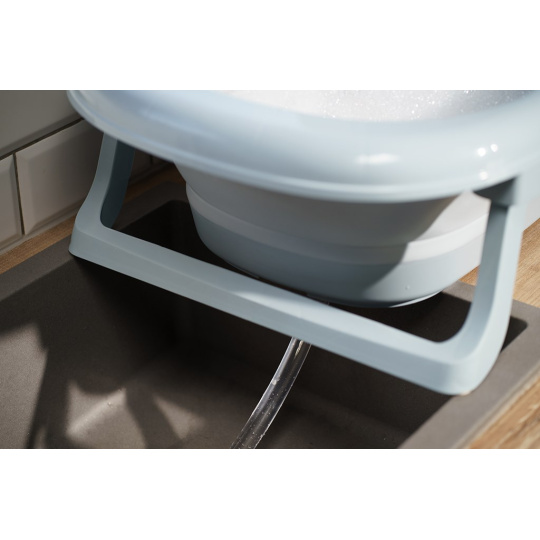 Vanička je vybavena výpustním ventilem a páskovým teploměrem, což výrazně zvyšuje komfort a bezpečnost při každodenním používání. Dá jednoduše složit na výšku pouhých 10 cm, přičemž plastové nožičky se sklopí přímo pod vaničku – díky čemuž zabírá minimum místa a je ideální pro skladování i v menších prostorách.