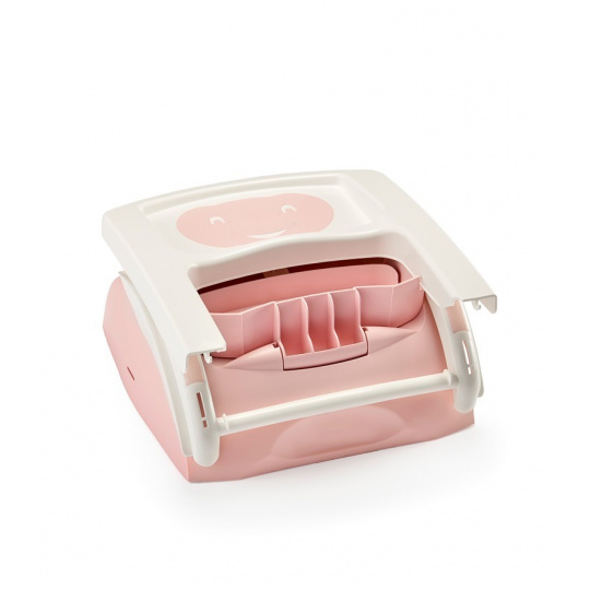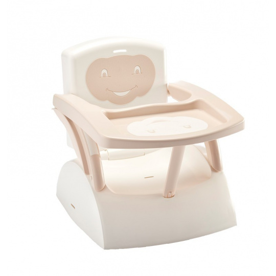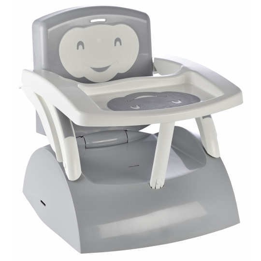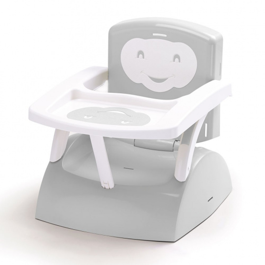 Tato lehká a univerzální skládací židlička s hracím nebo jídelním pultíkem roste spolu s dítětem. Díky své univerzálnosti se tak dokáže změnit na křesílko pro vaše děťátko. Díky svým nohám může stát na zemi, ale může být také připevněna ke klasické židli pomocí systému pásů. Systém pásů se nachází uvnitř židle.