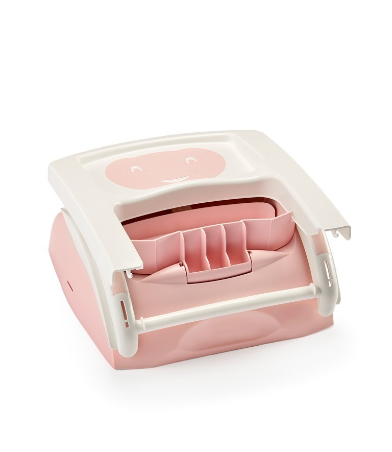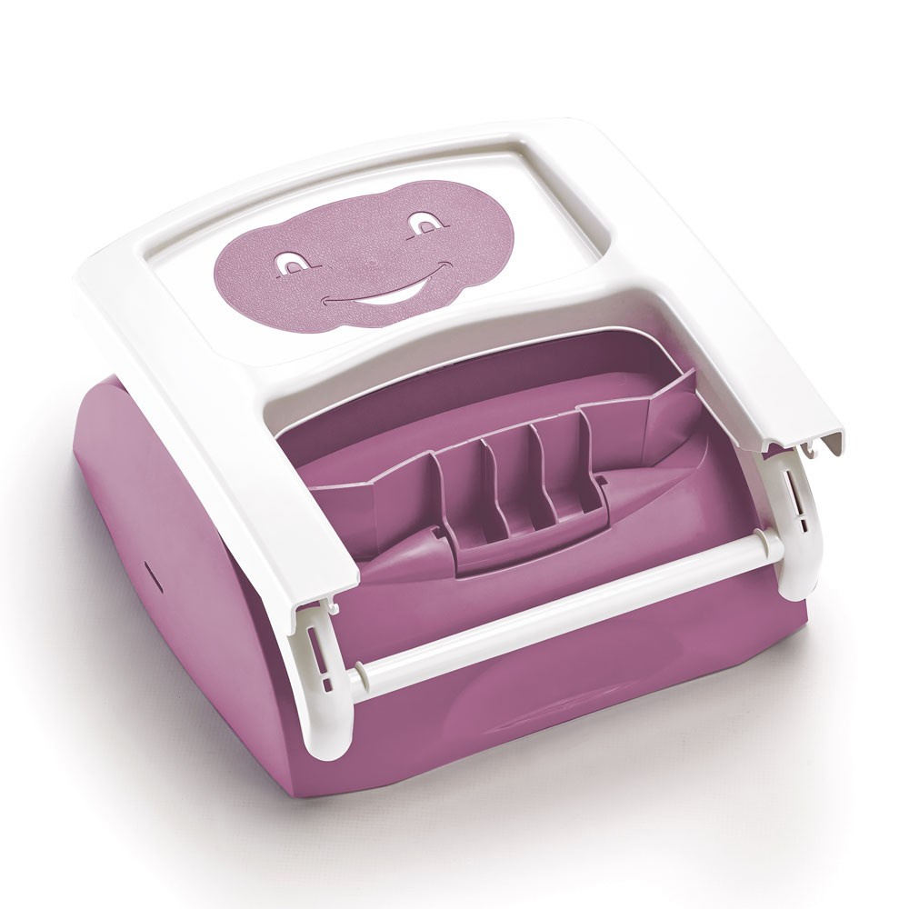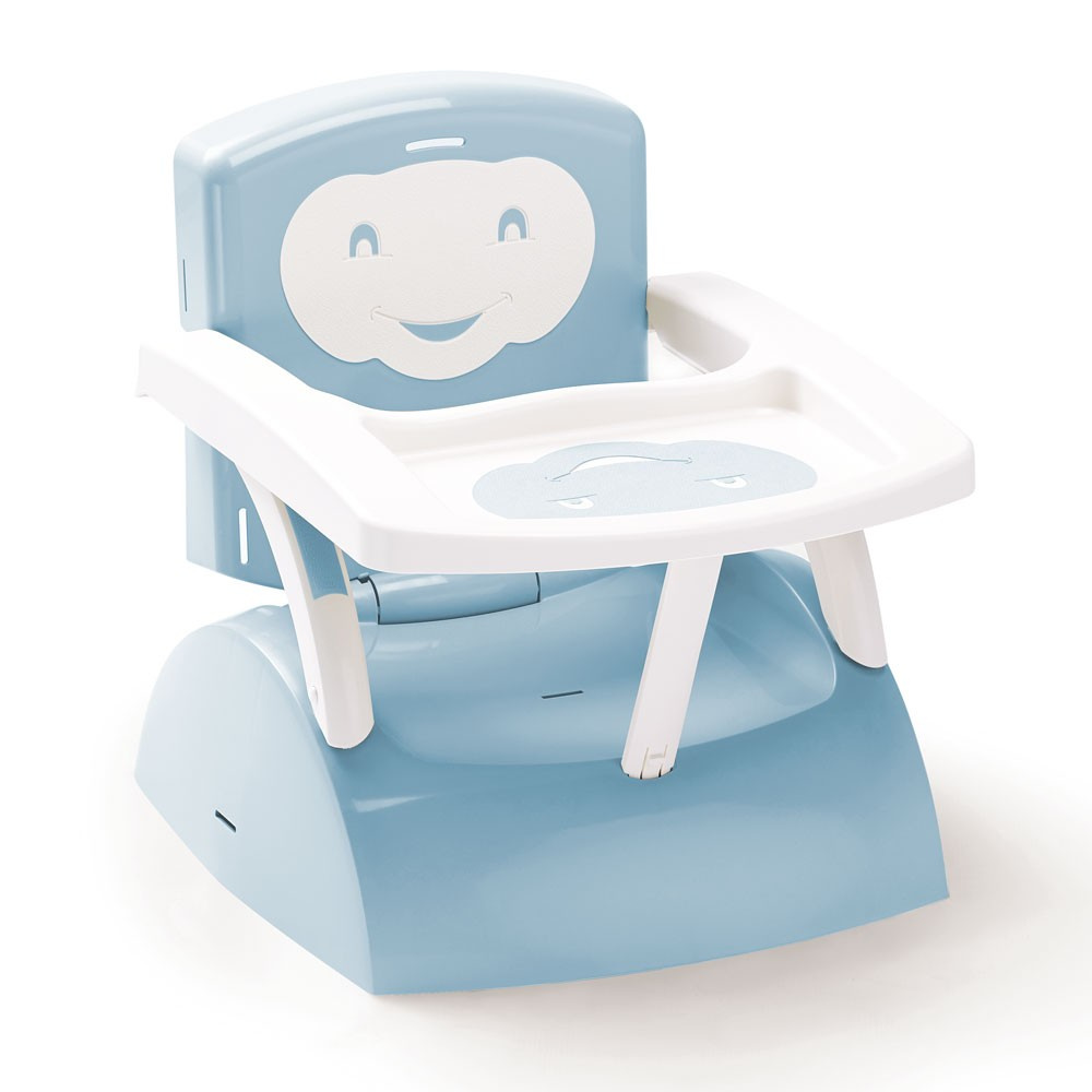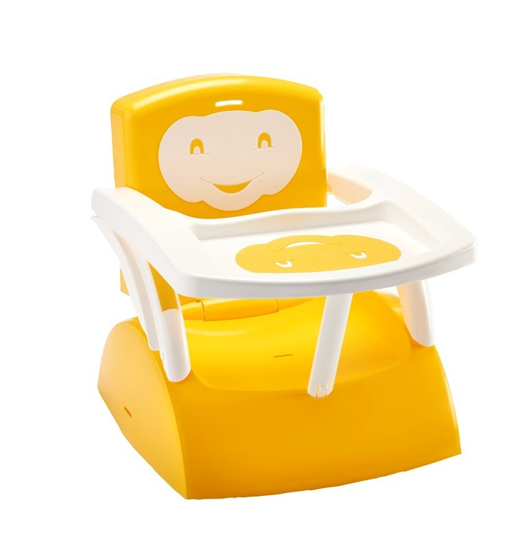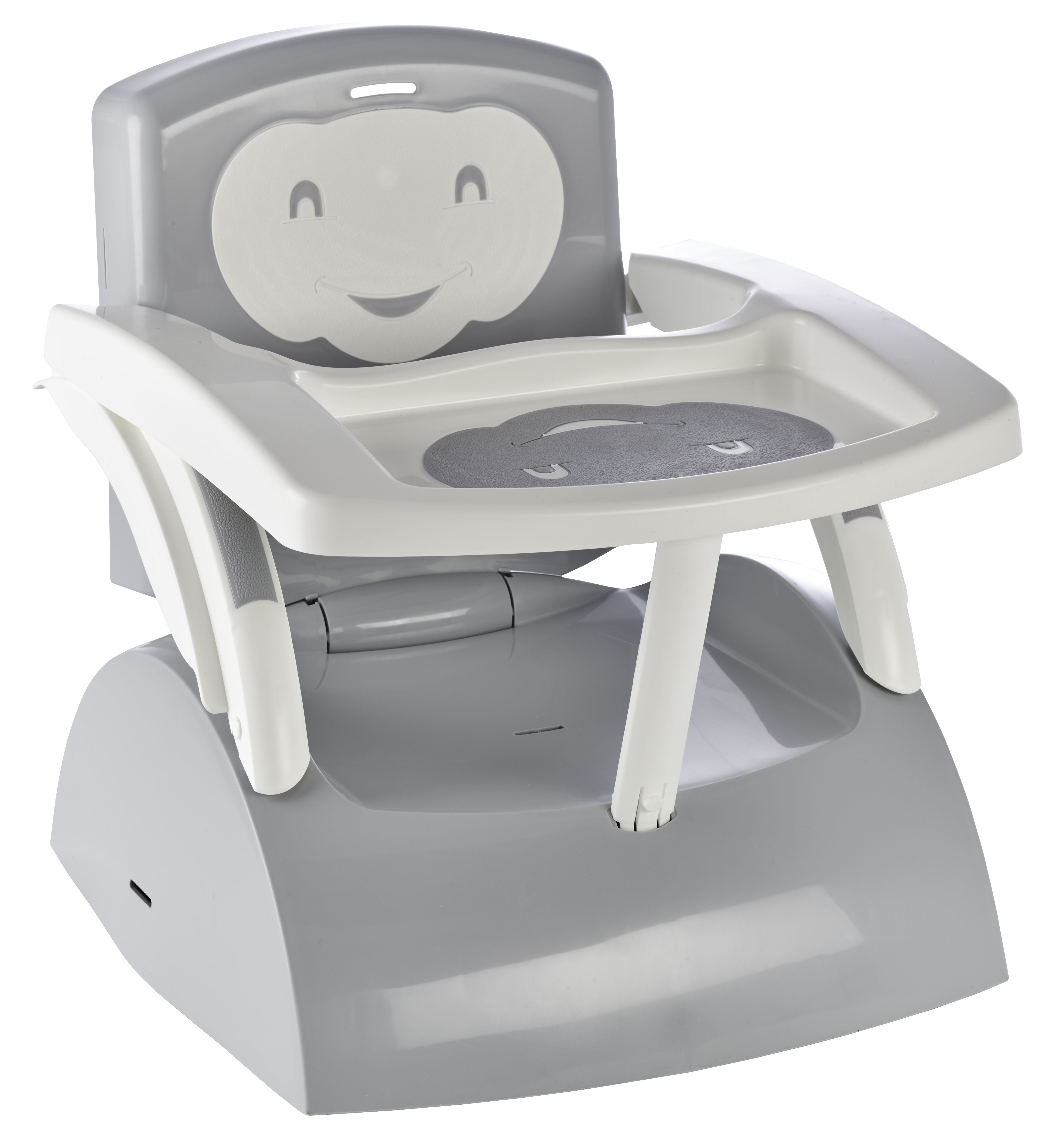Tato lehká a univerzální skládací židlička s hracím nebo jídelním pultíkem roste spolu s dítětem. Díky své univerzálnosti se tak dokáže změnit na křesílko pro vaše děťátko. Díky svým nohám může stát na zemi, ale může být také připevněna ke klasické židli pomocí systému pásů. Systém pásů se nachází uvnitř židle.