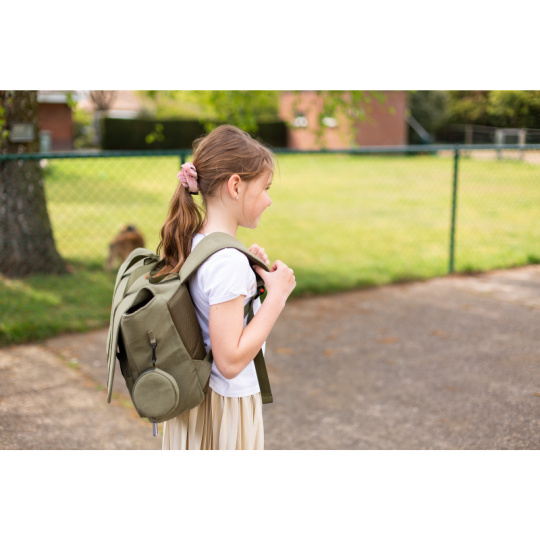 Originální školní taška je ideální pro děti od 6 do 9 let, lze ji používat od první třídy základní školy. Taška má dva oddělené vnitřní prostory, velkou vnější a menší vnitřní kapsu na zip pro přehledné uložení školních potřeb i svačinky. V hlavnim prostoru je umístěna termoizolační kapsa na láhev s pitím. Polstrovaná záda ze síťoviny zajišťují cirkulaci vzduchu při kontaktu s tělem. Nastavitelné ramenní popruhy mají ergonomický tvar S, takže lépe drží na svém místě. Držadlo umožňuje nošení tašky v ruce. Ve spodní části tašky jsou malé kovové cvočky, aby se dno tašky nedotýkalo přímo země. Taška je dodávána s fluorescenční reflexní pláštěnkou, která udrží obsah tašky v suchu i během deštivého počasí a vaše dítě bude na ulici dobře viditelné. Pláštěnku lze snadno uložit do odnímatelného pouzdra na zip. Rozměry: 39 x 31 x 12 cm Nosnost: 2 kg Materiál: 65% plátno, 35% polyester, podšívka: 100% nylon Vhodné pro děti od 6 let.