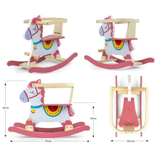 Dřevěný houpací koník s opěradlem Milly Mally Lucky 12 růžový
