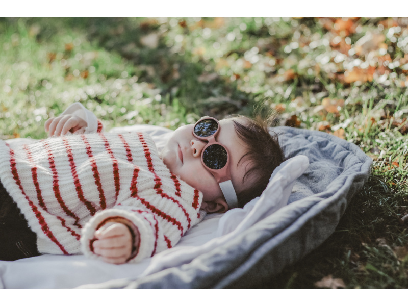 Kvalitní sluneční brýle pro nejmenší nabízí 100% UV ochranu citlivých očí dítěte. Čočky kategorie 4 poskytují ochranu proti extrémnímu slunečnímu záření i u moře či na horách. Nastavitelný gumový pásek kolem hlavy brýle bezpečně udrží na hlavičce dítěte vleže i ve vzpřímené poloze. Obroučky jsou vyrobeny z měkkého, pohodlného materiálu, který se přizpůsobí obličeji dítěte. Jejich tvar chrání oči dítěte i proti pronikání slunečního záření ze strany. Brýle jsou dodávány v pevné krabičce a součástí balení je i mikrovláknový sáček na jejich bezpečné uložení v kabelce či přebalovací tašce. Vhodné pro děti od narození do 9 měsíců.