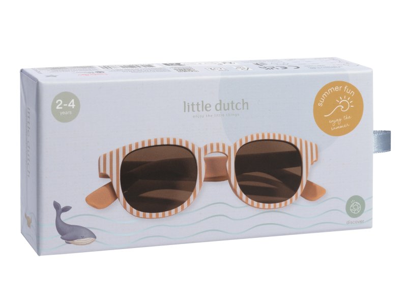 Kvalitní dětské sluneční brýle s filtrem UV 400 poskytují citlivým dětským očím 100% ochranu před škodlivým zářením. Brýle jsou skvělým doplňkem na procházky, na výlety i na hraní u vody. Čočky brýlí obsahují sluneční filtr kategorie 3 (propustnost světla 8 – 18%) – tmavý filtr vhodný pro intenzivní sluneční záření. Materiál: plast Filtr: UV-400 Kategorie filtru: 3 Údržba: čistěte jemnou mýdlovou vodou a osušte měkkým hadříkem, nepoužívejte agresivní mycí prostředky, vždy skladujte v úložném sáčku Vhodné pro děti od 2 do 4 let.