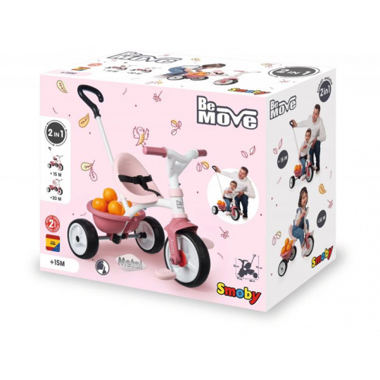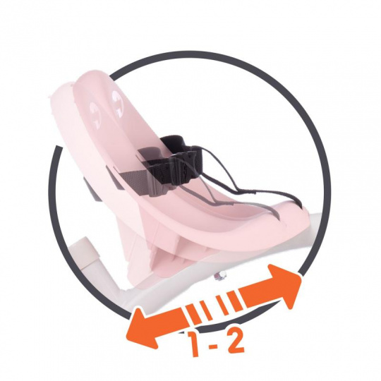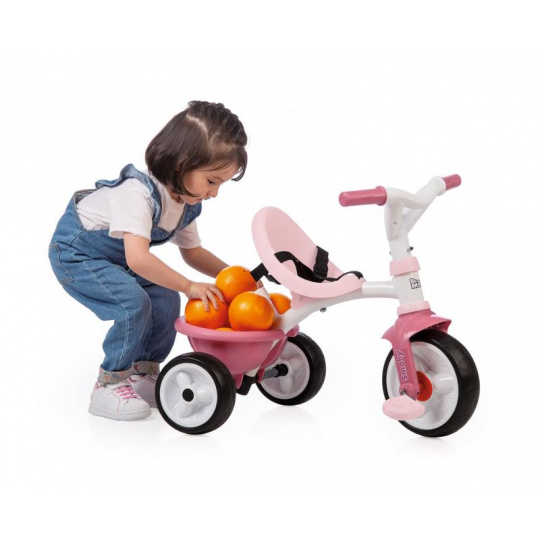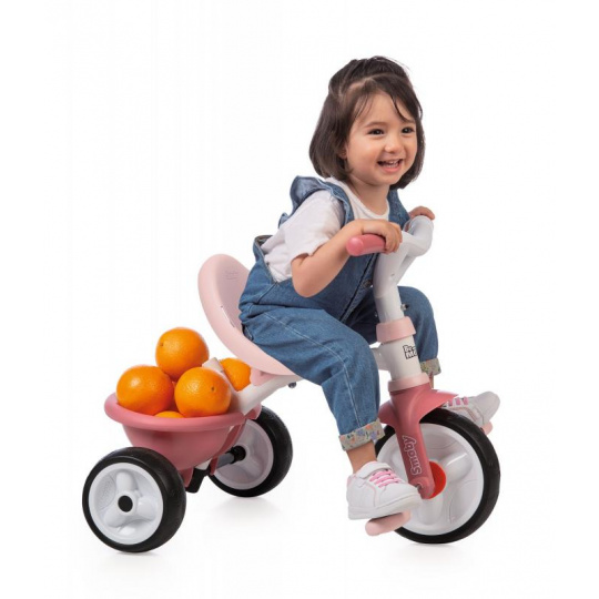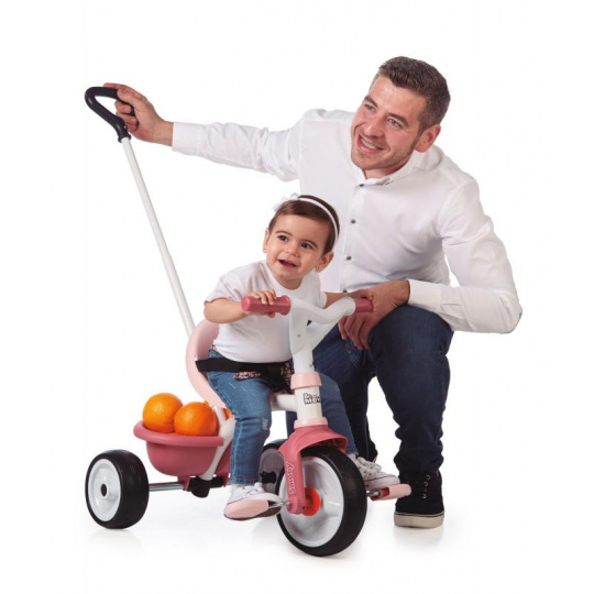 Šlapací tříkolka pro holčičky v růžové barvě má kovový rám, nastavitelnou a odnímatelnou vodící tyč (3 výškové úrovně, max. 95 cm),