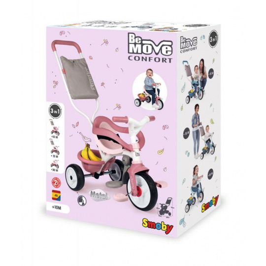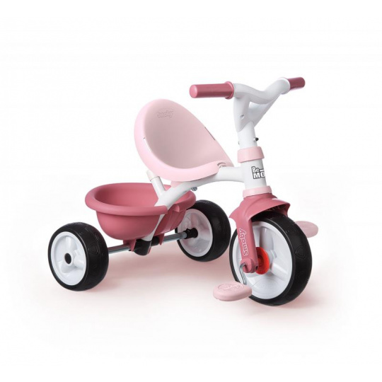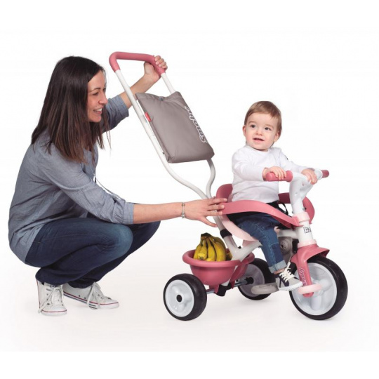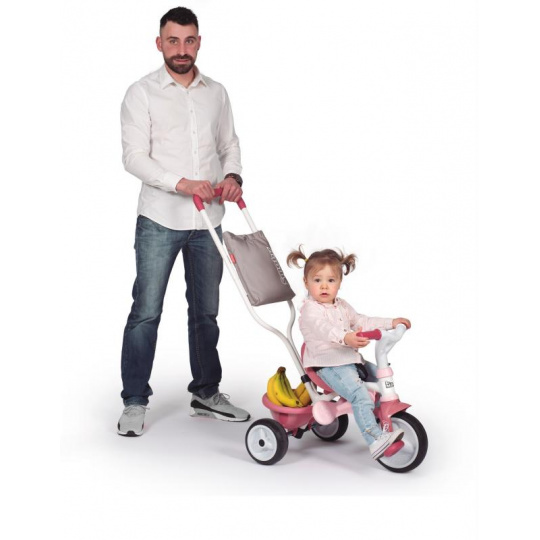 Šlapací tříkolka má kovový rám, odnímatelnou vodící tyč, bezpečnostní ochranný rám a pás, možnost zablokování šlapadel, výklopný plastový košík,