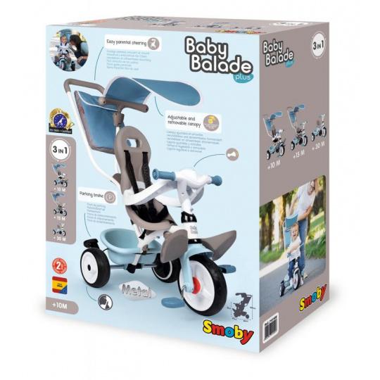 Smoby 741400 Tříkolka Baby Balade Plus modrá
