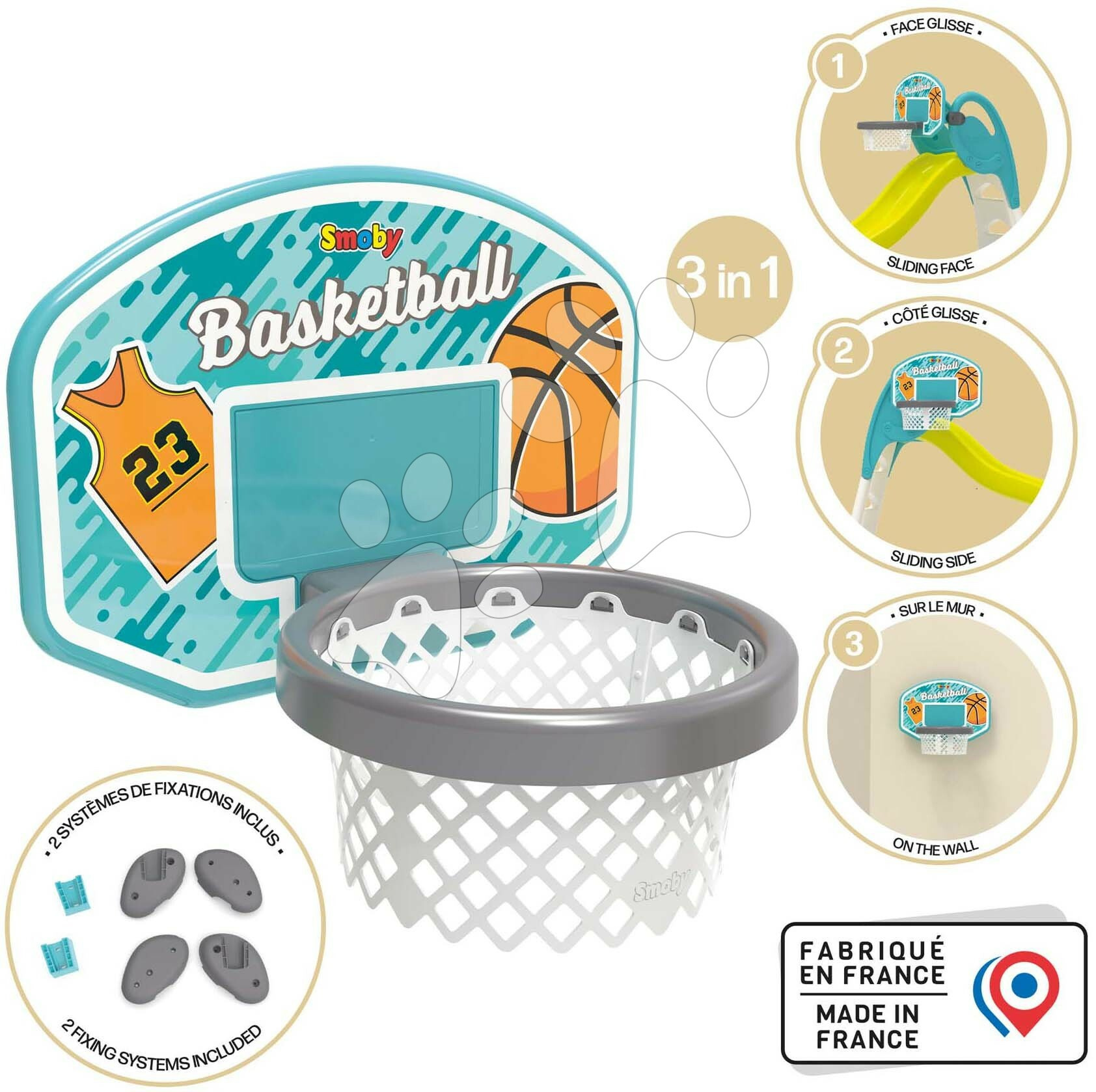 Smoby Basketbalový kôš na šmykľavky a stenu Basketball Hoop 3v1 s loptou a háčikmi na uchytenie a UV filtrom od 3 rokov