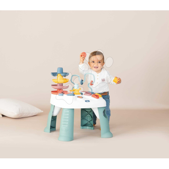 Smoby Didaktický stolek s vkládacími kostkami Activity Table Little Smoby s aktivitami na vývoj jemné motoriky od 12 měsíců
