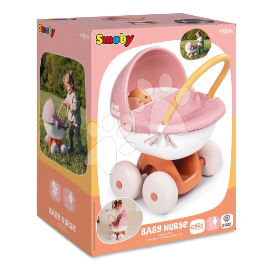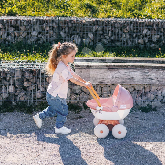 Smoby Hluboký kočárek s textilem Pram Soft Baby Nurse pro 42 cm panenku s 54 cm vysokou ergonomickou rukojetí od 18 měsíců