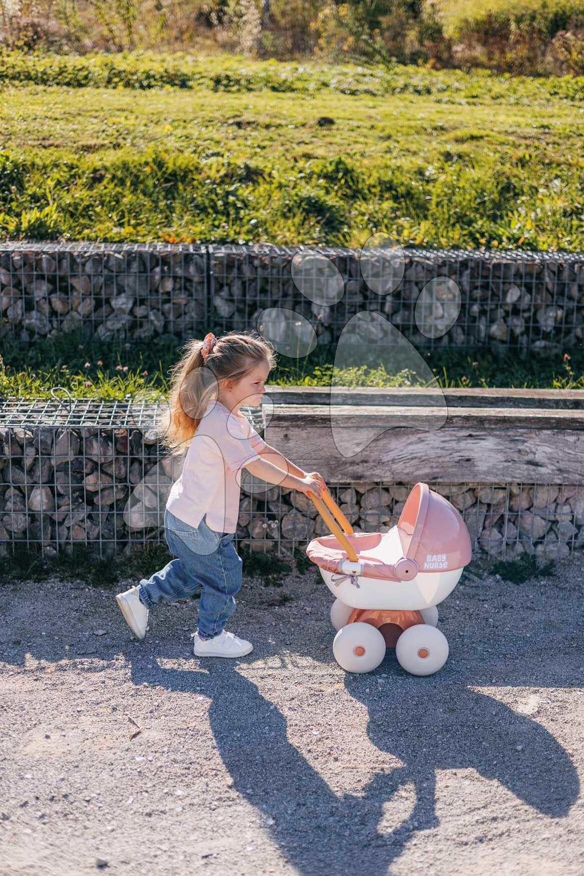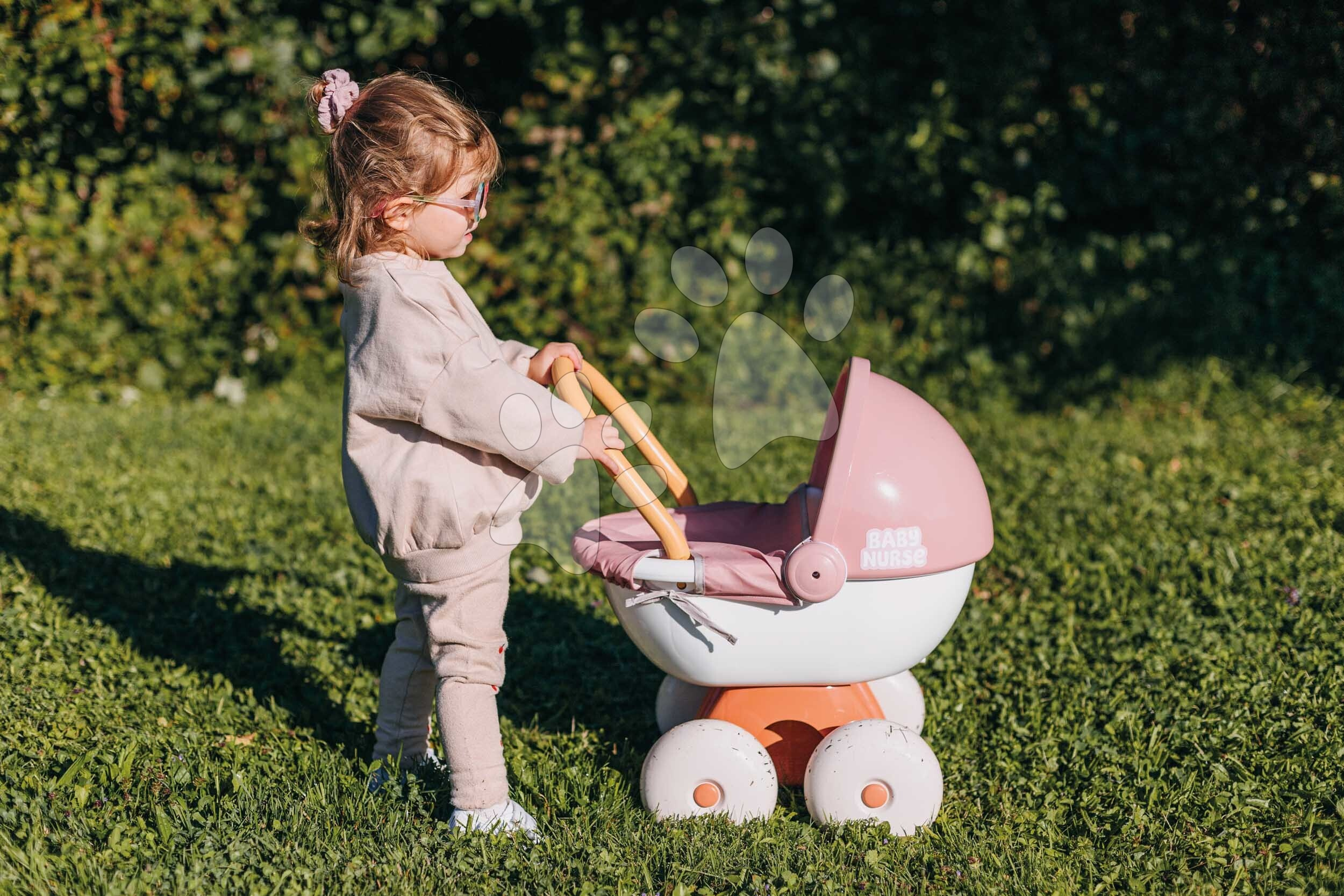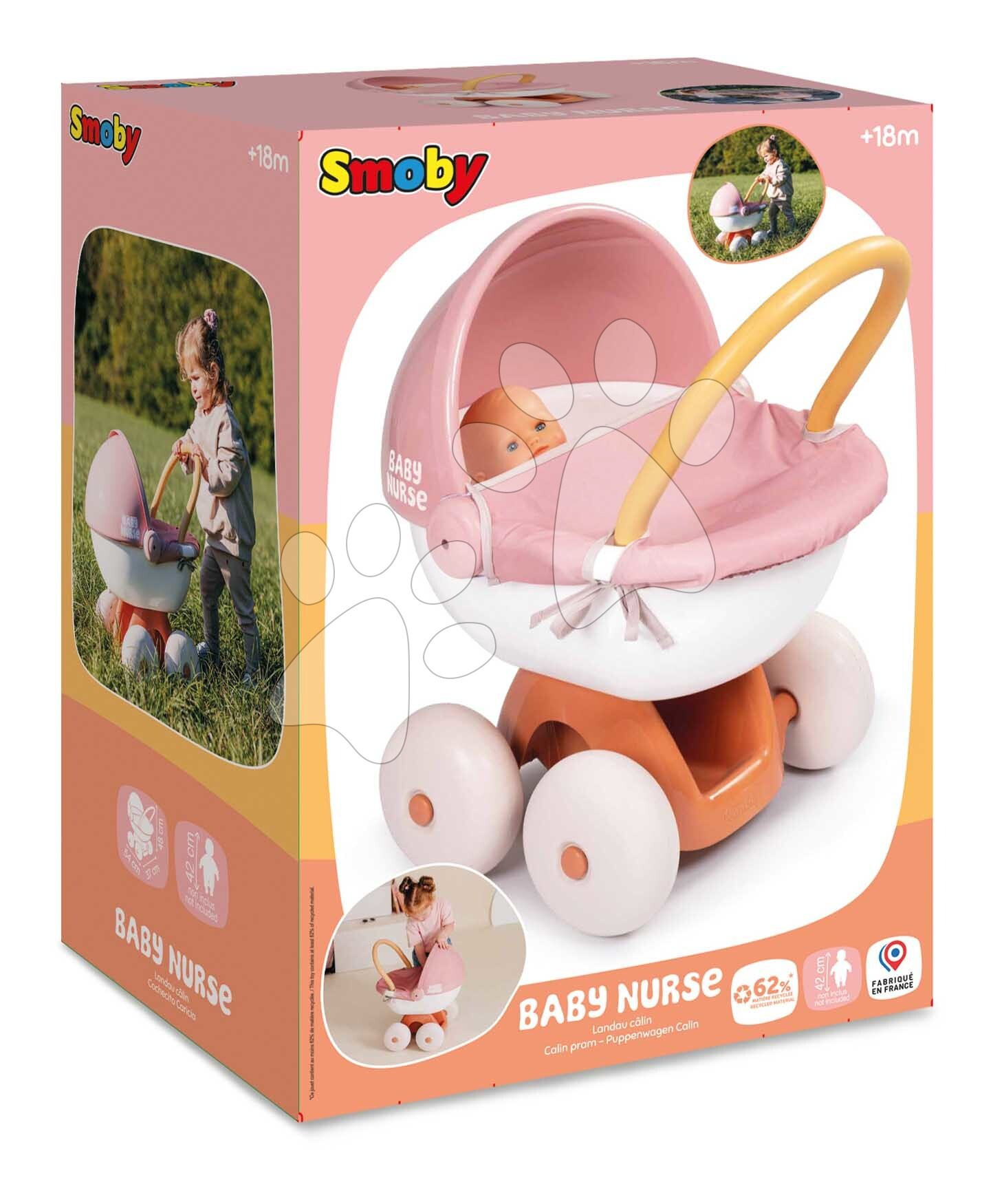 Děti mají k dispozici úložný prostor, nacházející se ve spodní části kočárku. Ten dívky využijí k přenášení různých doplňků pro panenky nebo jiných hraček. Kočárek pro dětskou panenku je kvalitní francouzský výrobek, díky ekologické výrobě se použilo až 62 % recyklovaných materiálů. Děti milují hru s panenkou, rády ji koupou, převlékají, krmí, uspávají nebo ji vozí v kočárku. Hra s dětskou panenkou je pro děti důležitá i při rozvíjení komunikačních a jazykových dovedností, hravým způsobem se přibližují světu dospělých. Rozměry produktu jsou 37*54*48 cm, panenka není součástí balení.