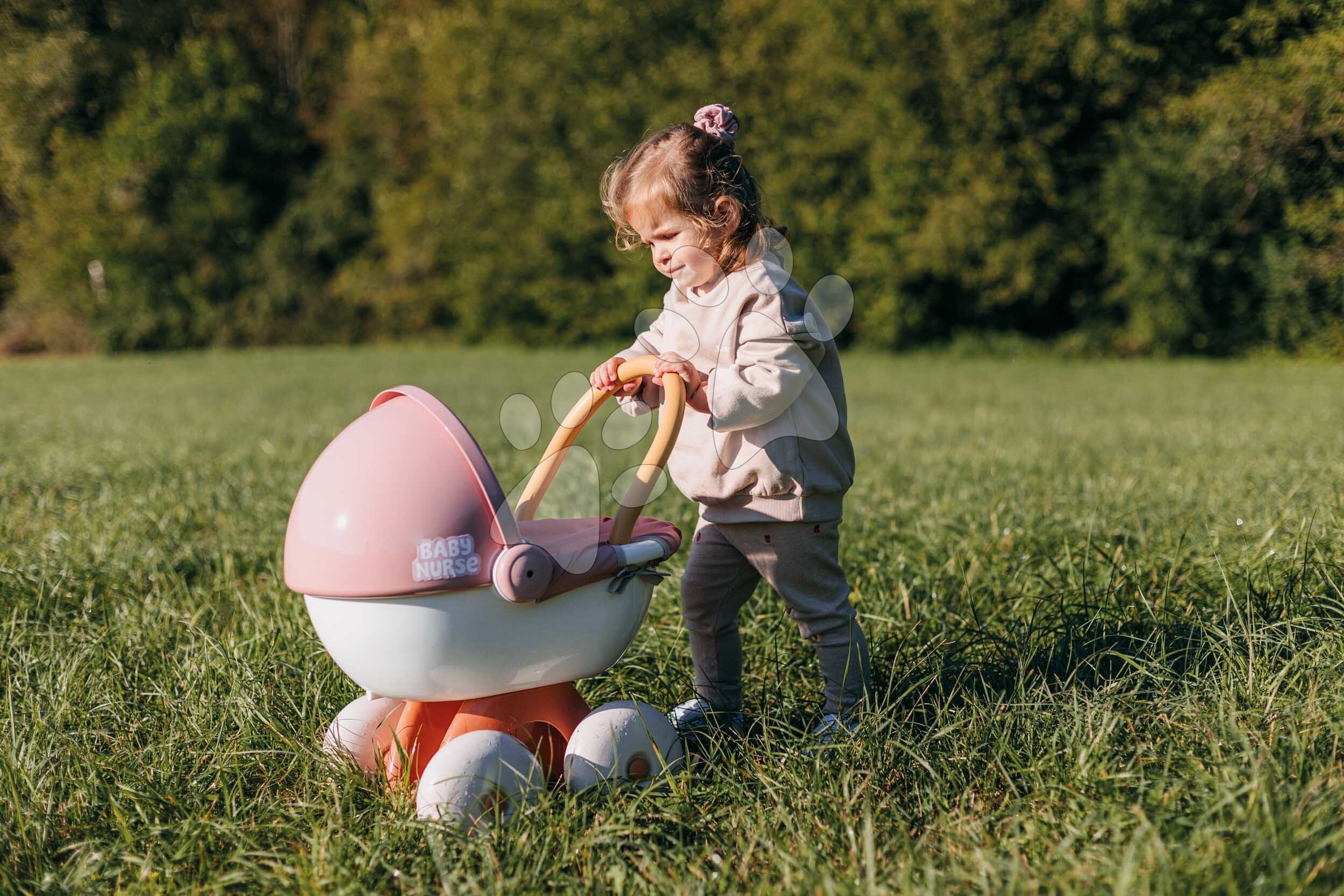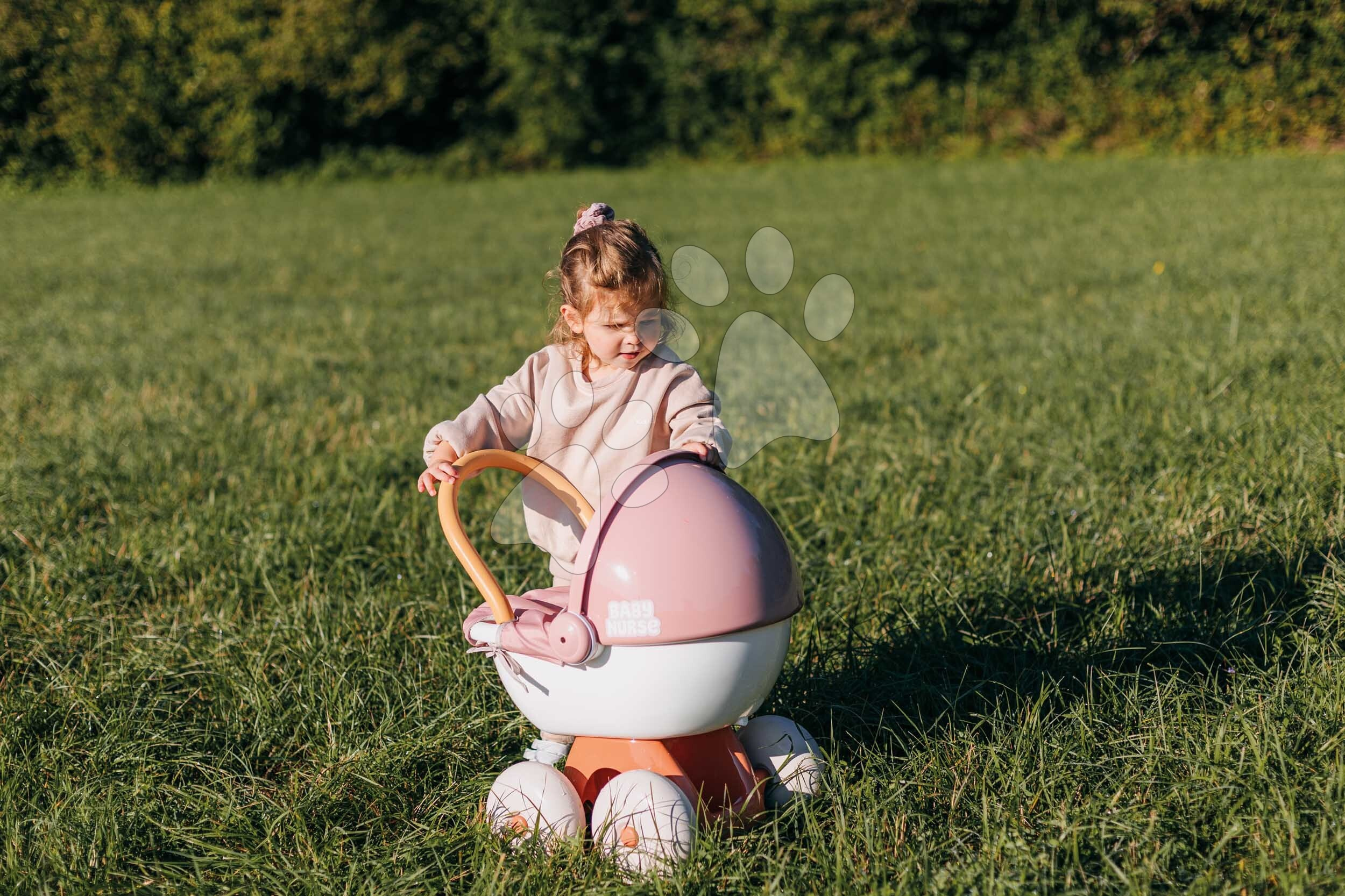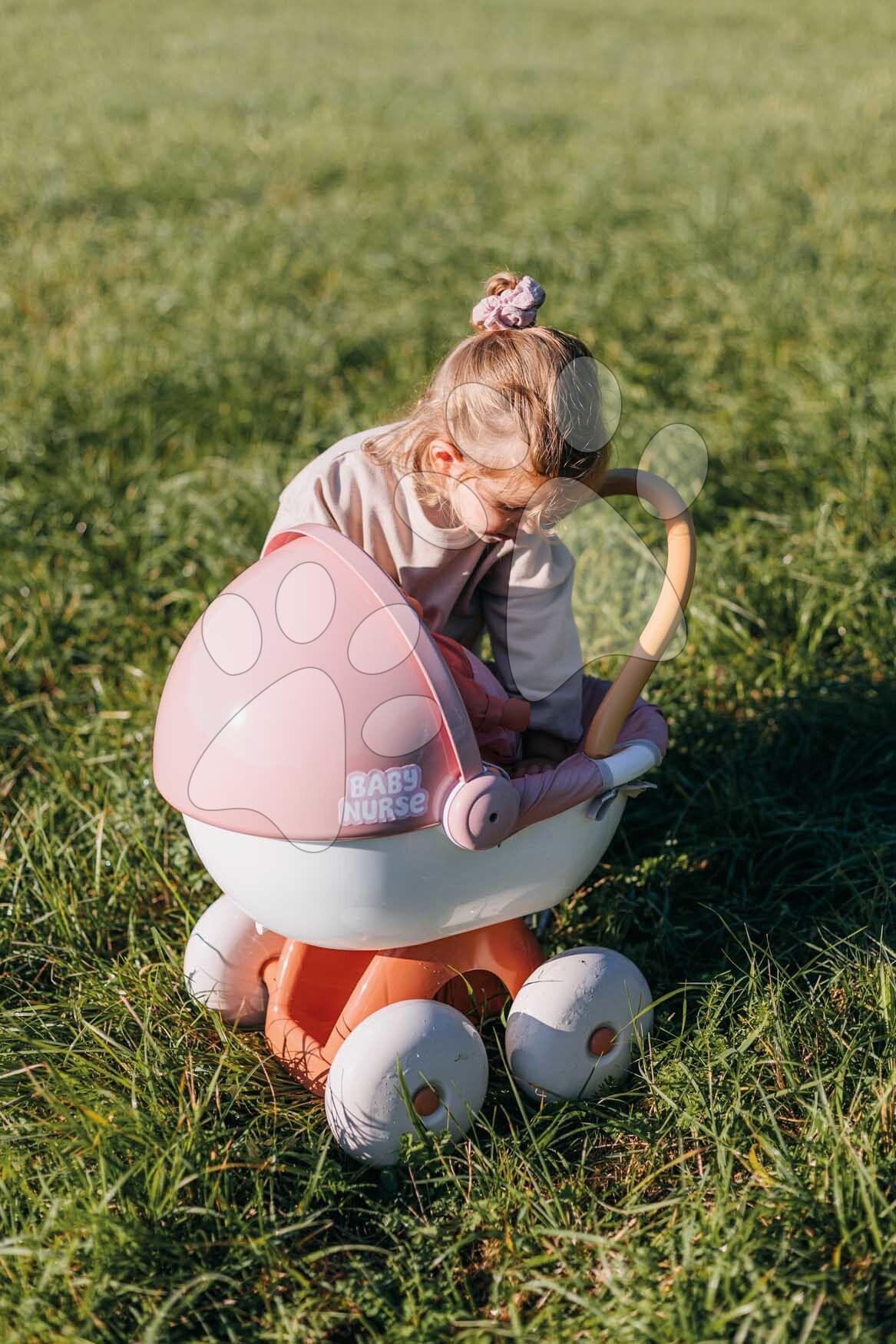 Děti mají k dispozici úložný prostor, nacházející se ve spodní části kočárku. Ten dívky využijí k přenášení různých doplňků pro panenky nebo jiných hraček. Kočárek pro dětskou panenku je kvalitní francouzský výrobek, díky ekologické výrobě se použilo až 62 % recyklovaných materiálů. Děti milují hru s panenkou, rády ji koupou, převlékají, krmí, uspávají nebo ji vozí v kočárku. Hra s dětskou panenkou je pro děti důležitá i při rozvíjení komunikačních a jazykových dovedností, hravým způsobem se přibližují světu dospělých. Rozměry produktu jsou 37*54*48 cm, panenka není součástí balení.