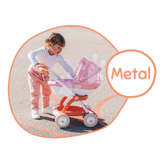 Smoby Hluboký kočárek s textilním potahem Pram Soft Baby Nurse pro panenku 42 cm výška rukojeti 58 cm od 18 měsíců