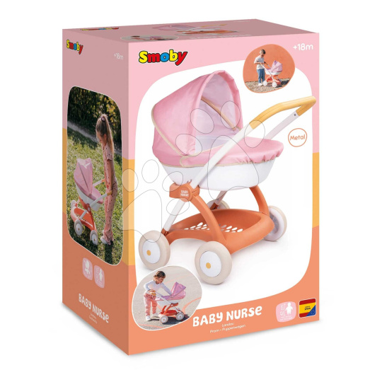 Hluboký kočárek s textilním potahem Pram Soft z kolekce Baby Nurse představuje originální dárek pro všechny děti a zejména holčičky od 18 měsíců, které si v něm mohou vozit panenku o velikosti do 42 cm. Pevná kovová konstrukce v kombinaci s odolným plastem zaručuje kočárku bezpečnost a vysokou stabilitu. Holčičky v něm mohou bez obav převážet svou panenku v interiéru i exteriéru. Komfortní ergonomická rukojeť je ve výšce 58 cm. Kočárek pro panenku je vyhotoven v barevné kombinaci bílé, oranžové a růžové, disponuje praktickou stříškou, která ochrání panenku před nepříznivým počasím. Kvalitní textil lze snadno mýt jemně navlhčeným hadříkem nebo houbou.