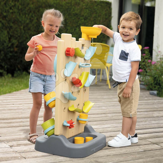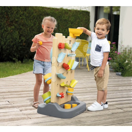 - vodní dráha – dítě naplní žlutou nádržku ve vrchní části vodou a pomocí skluzavek se naučí správně usměrňovat její tok, přičemž může využít i mlýnská kola