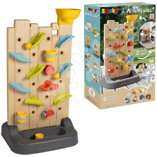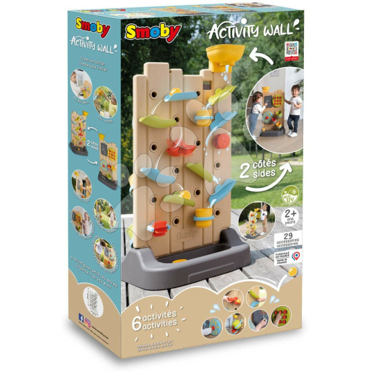 Smoby Hrací stěna oboustranná se 6 sportovními aktivitami Activity Wall hry s vodou míčem nastavitelná s 29 doplňky s UV filtrem od 24 měsíců