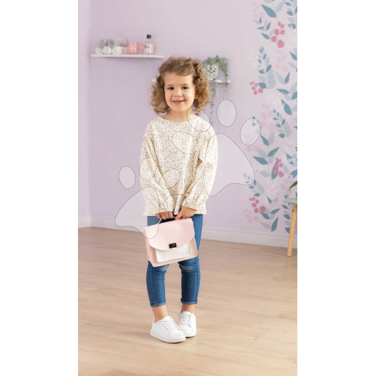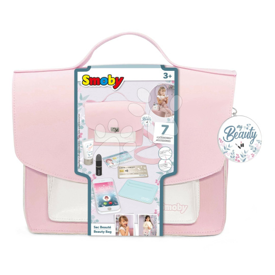 Kabelka s kosmetikou My Beauty Bag od francouzské značky Smoby umožní dívkám od 3 let mít vždy po ruce svou oblíbenou kosmetiku. Okouzlující kabelka v jemném růžovém provedení je vyrobena z měkké umělé kůže, díky ramennímu popruhu je příjemná pro každodenní nošení. Uvnitř kabelky se nachází 2 přihrádky, do kterého se vejde 6 stylových doplňků, mezi kterými je černá rtěnka, tuba s krémem na ruce, modré pouzdro na karty, kreditní karta, doklad o totožnosti a plastový chytrý telefon.