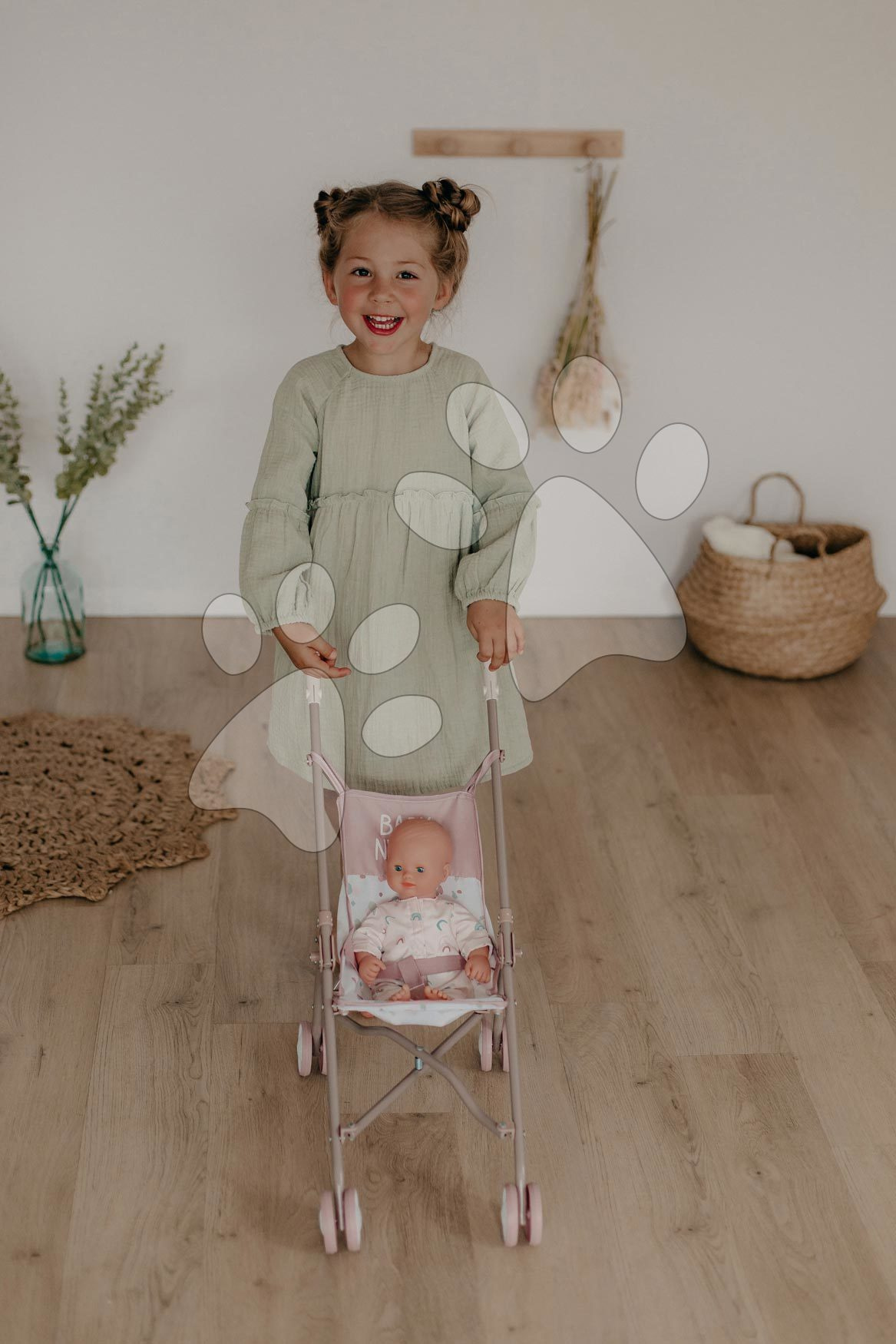 Smoby Kočárek golfky skládací Foldable Pushchair Natur D'Amour Baby Nurse pro 42 cm panenku výška rukojeti 58 cm od 24 měsíců