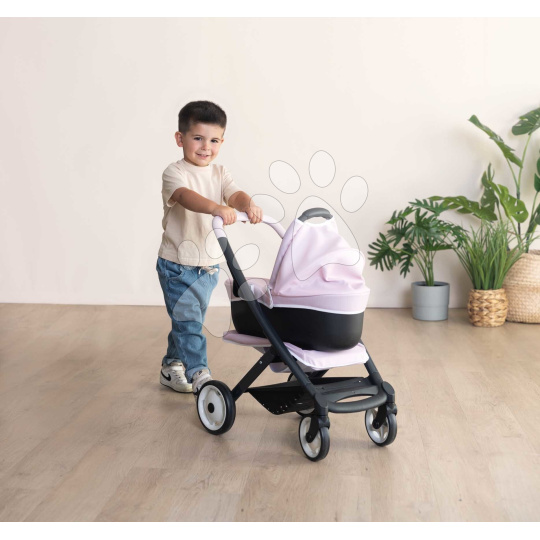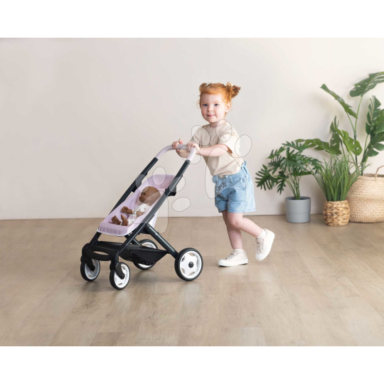 Design kočárku navrhli přední francouzští designéři Smoby, takže vypadá jako opravdový kočárek pro miminko. Vození panenky v kočárku je velmi oblíbená hra mezi nejmenšími dětmi, které si při této činnosti rozvíjejí jazykové a komunikační schopnosti, jemnou motoriku, fantazii a představivost. Péče o panenku jako o vlastní děťátko se děti přibližují světu dospělých, zkoušejí, co život rodičů přináší, získávají pocit zodpovědnosti. Rozměry kočárku jsou 55*39*64 cm.