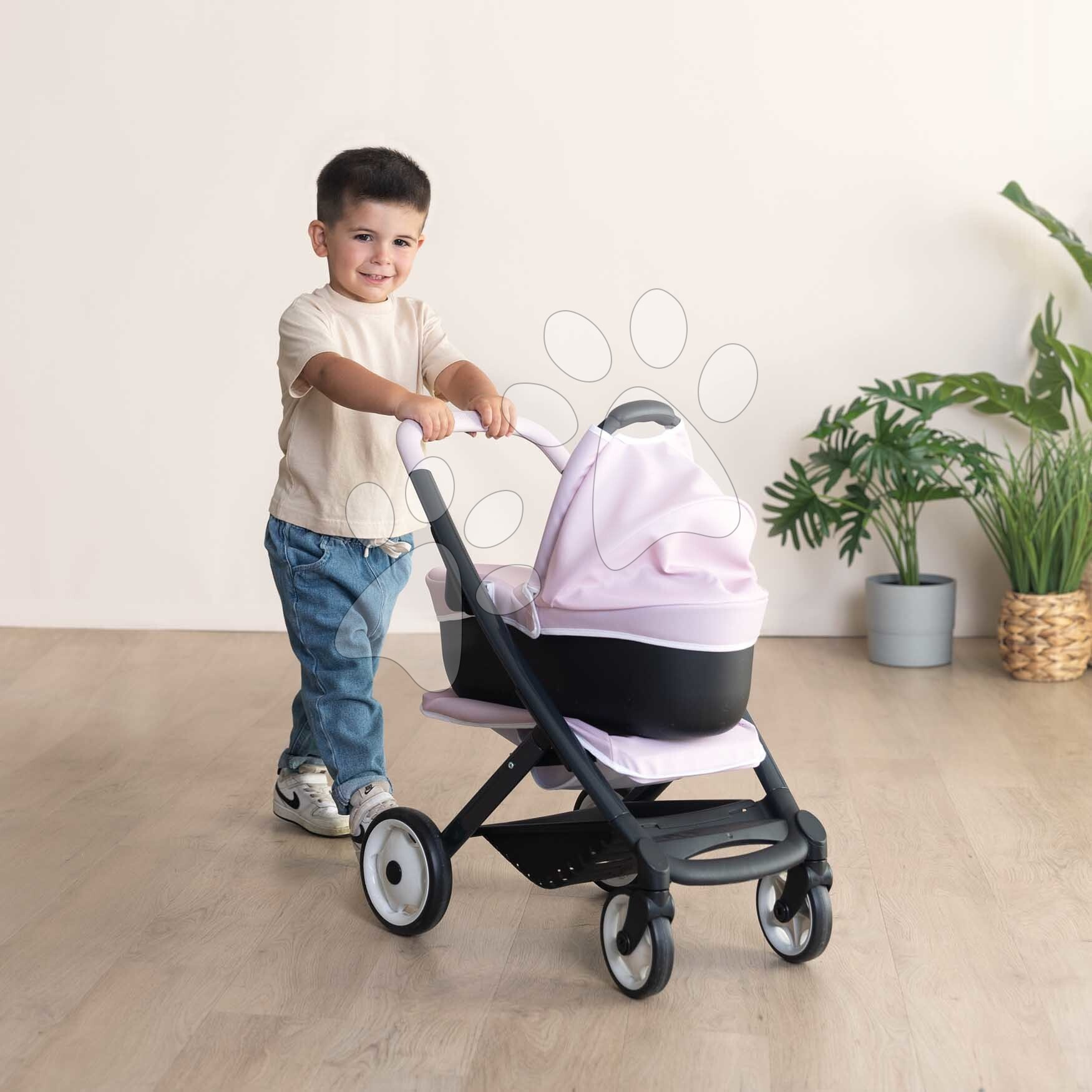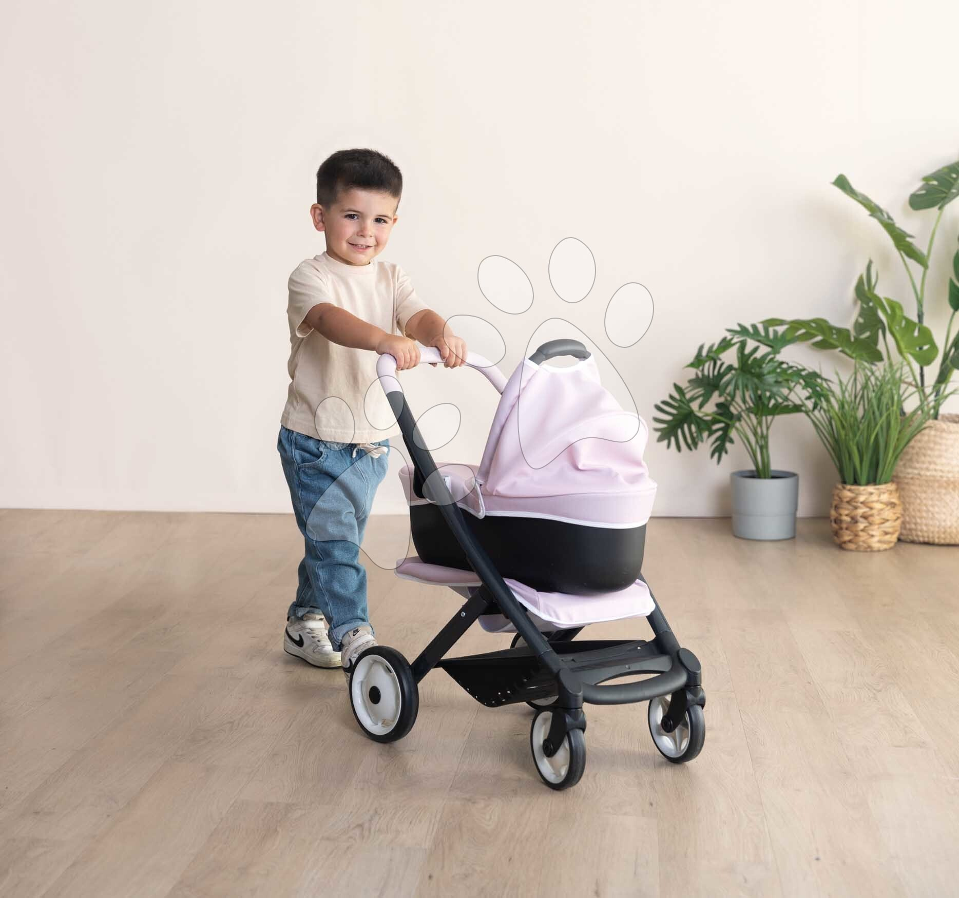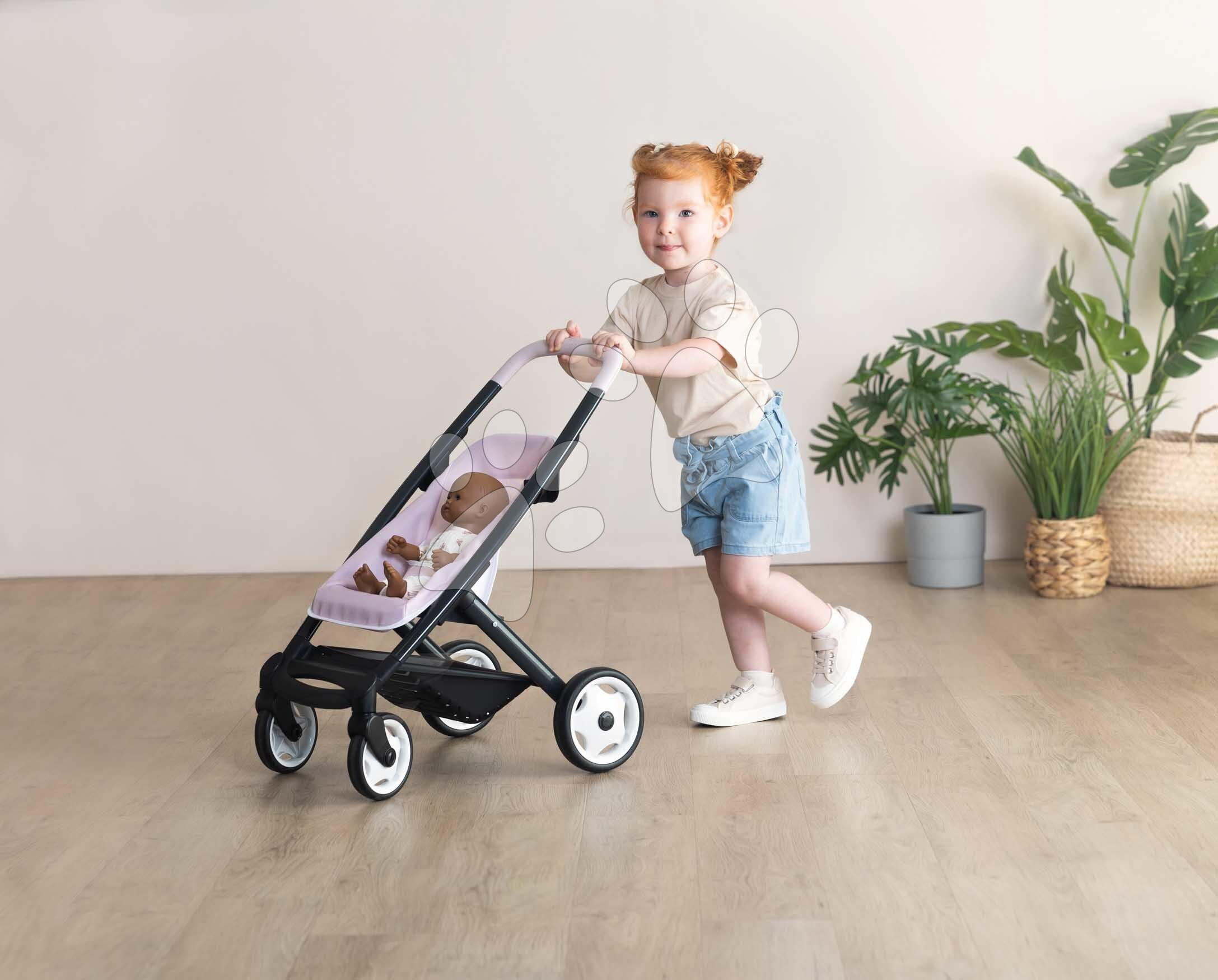 Design kočárku navrhli přední francouzští designéři Smoby, takže vypadá jako opravdový kočárek pro miminko. Vození panenky v kočárku je velmi oblíbená hra mezi nejmenšími dětmi, které si při této činnosti rozvíjejí jazykové a komunikační schopnosti, jemnou motoriku, fantazii a představivost. Péče o panenku jako o vlastní děťátko se děti přibližují světu dospělých, zkoušejí, co život rodičů přináší, získávají pocit zodpovědnosti. Rozměry kočárku jsou 55*39*64 cm.