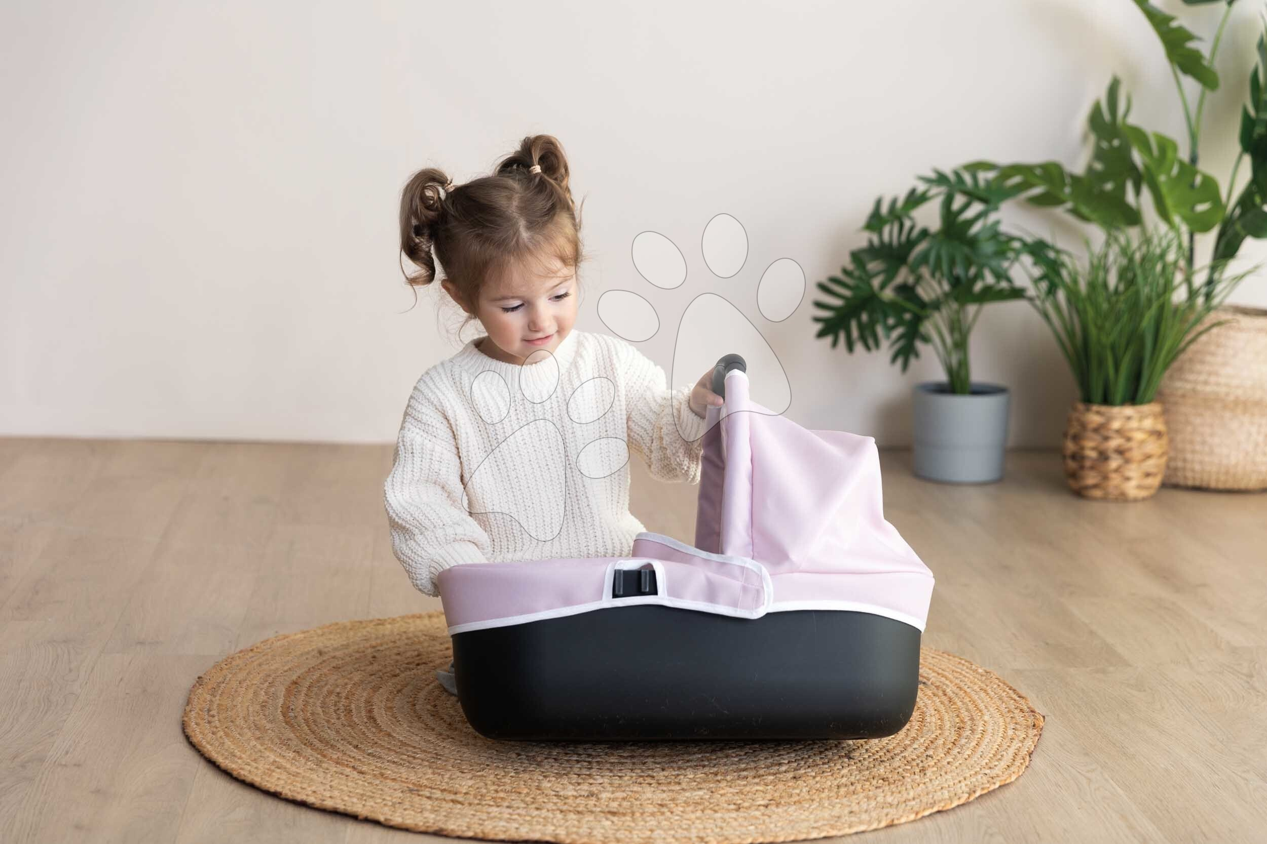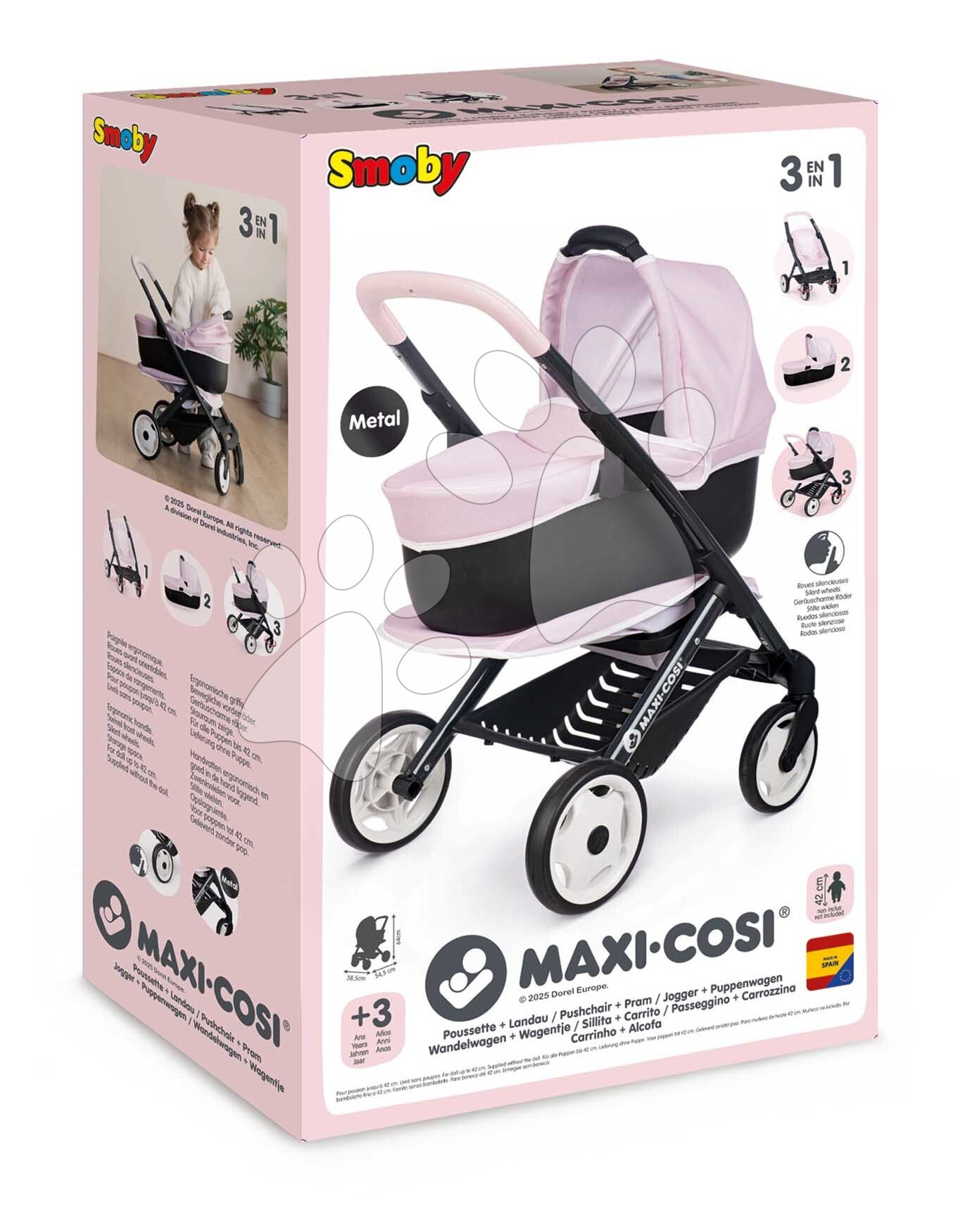 Smoby Kočárek trojkombinace Puschair Pink Maxi Cosi&Quinny hluboký sportovní a přenosná postýlka pro 42 cm panenku výška rukojeti 64 cm