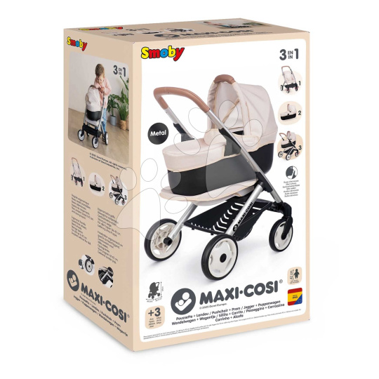 Smoby Kočárek trojkombinace Puschair Sandy Maxi Cosi&Quinny hluboký sportovní a přenosná postýlka pro 42 cm panenku výška rukojeti 64 cm