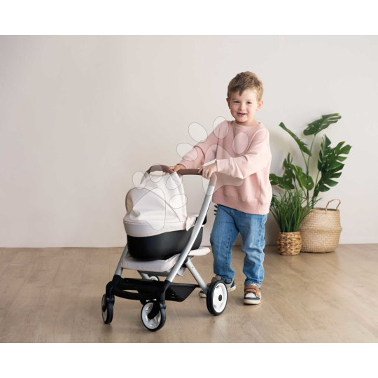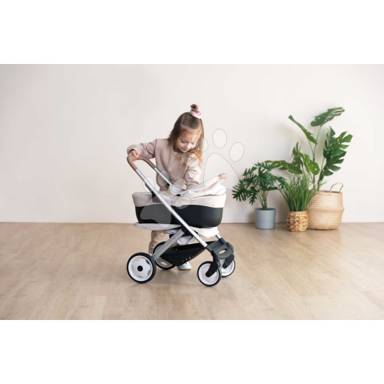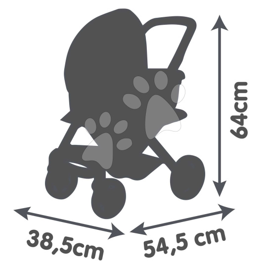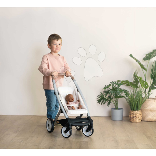 Design kočárku navrhli přední francouzští designéři Smoby, takže vypadá jako opravdový kočárek pro miminko. Vození panenky v kočárku je velmi oblíbená hra mezi nejmenšími dětmi, které si při této činnosti rozvíjejí jazykové a komunikační schopnosti, jemnou motoriku, fantazii a představivost. Péčí o panenku jako o vlastní děťátko se děti přibližují světu dospělých, zkoušejí, co život rodičů přináší, získávají pocit zodpovědnosti. Rozměry kočárku jsou 55*39*64 cm.