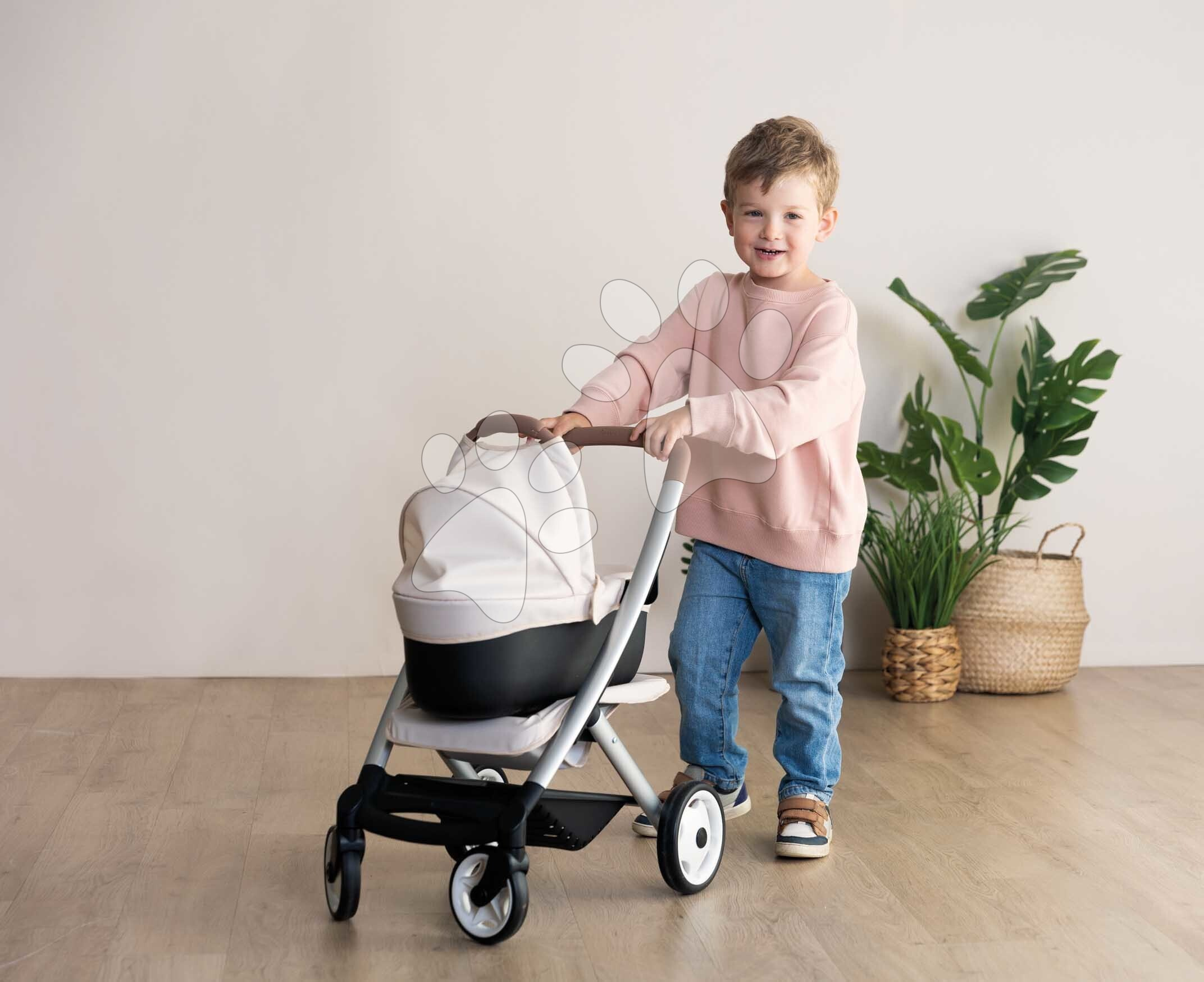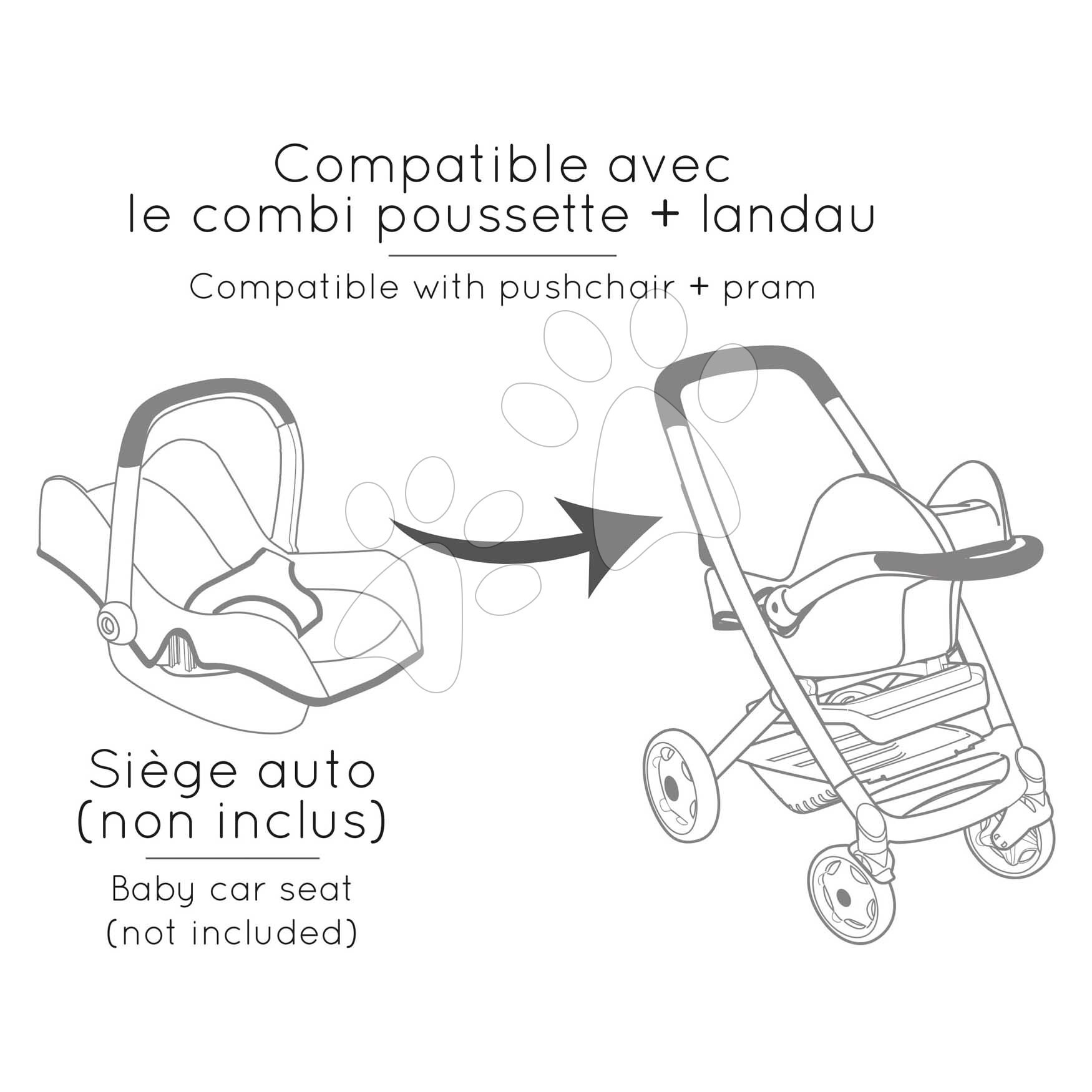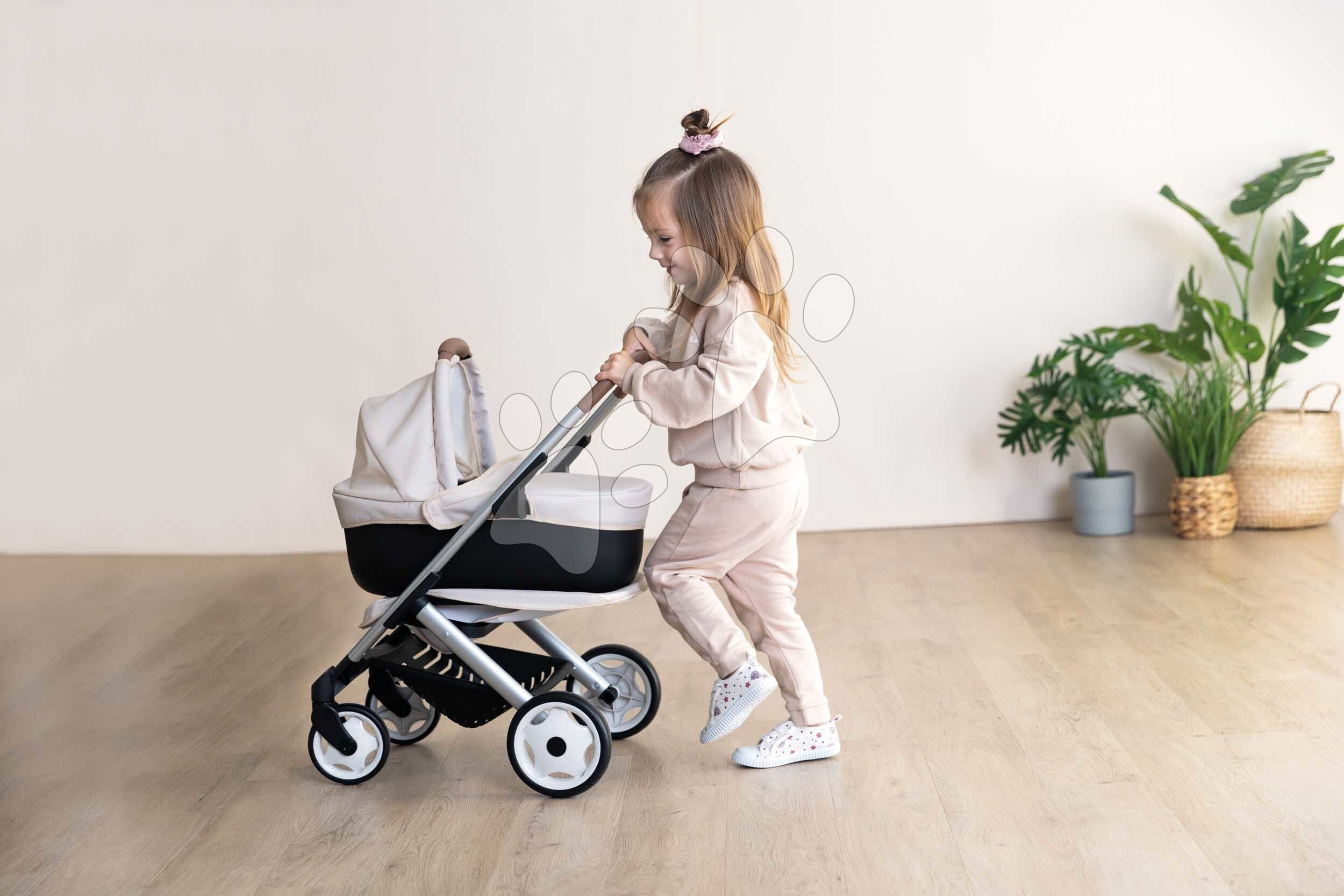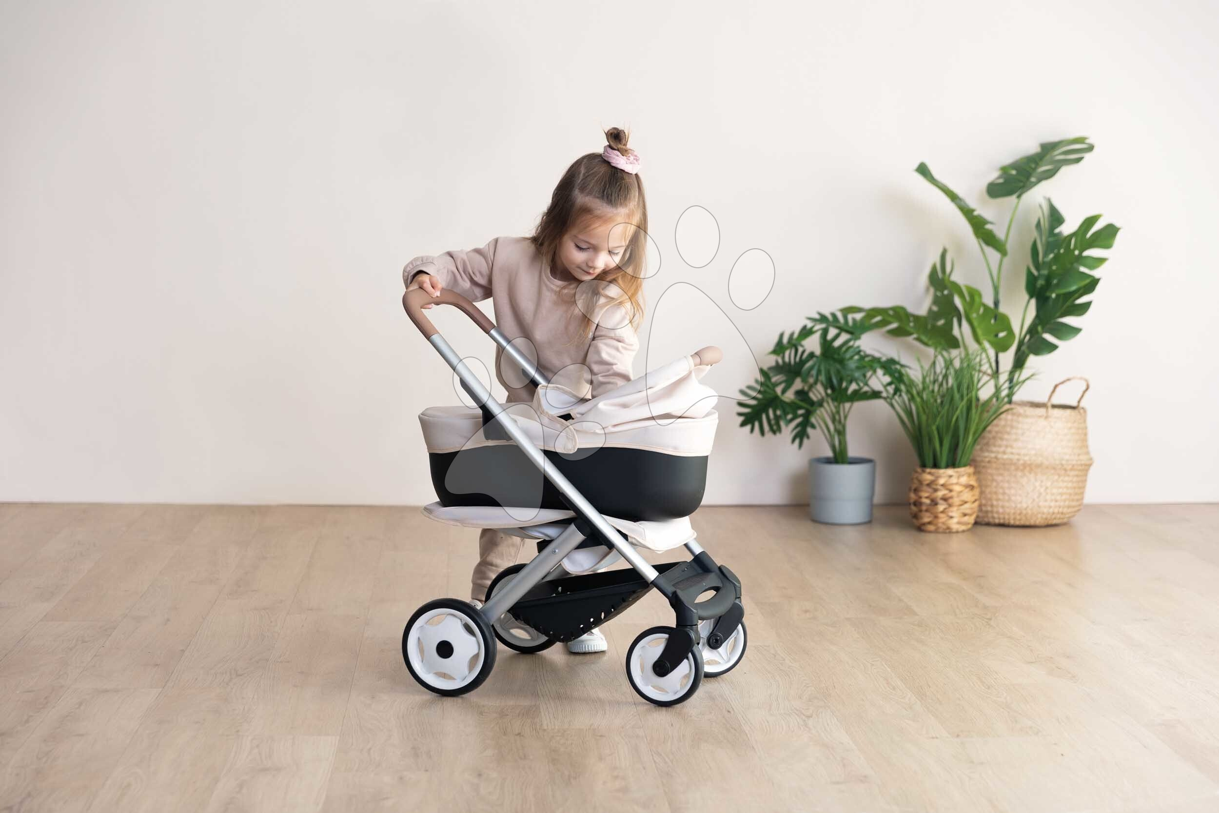 Design kočárku navrhli přední francouzští designéři Smoby, takže vypadá jako opravdový kočárek pro miminko. Vození panenky v kočárku je velmi oblíbená hra mezi nejmenšími dětmi, které si při této činnosti rozvíjejí jazykové a komunikační schopnosti, jemnou motoriku, fantazii a představivost. Péčí o panenku jako o vlastní děťátko se děti přibližují světu dospělých, zkoušejí, co život rodičů přináší, získávají pocit zodpovědnosti. Rozměry kočárku jsou 55*39*64 cm.