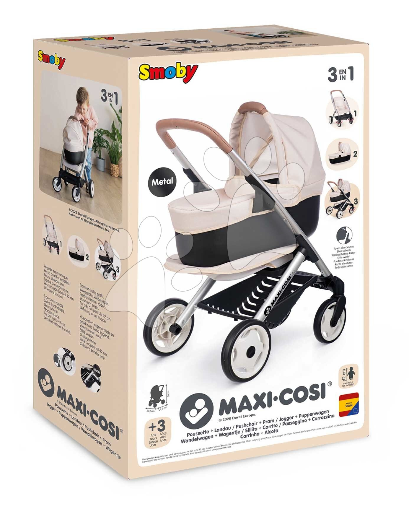 Smoby Kočárek trojkombinace Puschair Sandy Maxi Cosi&Quinny hluboký sportovní a přenosná postýlka pro 42 cm panenku výška rukojeti 64 cm