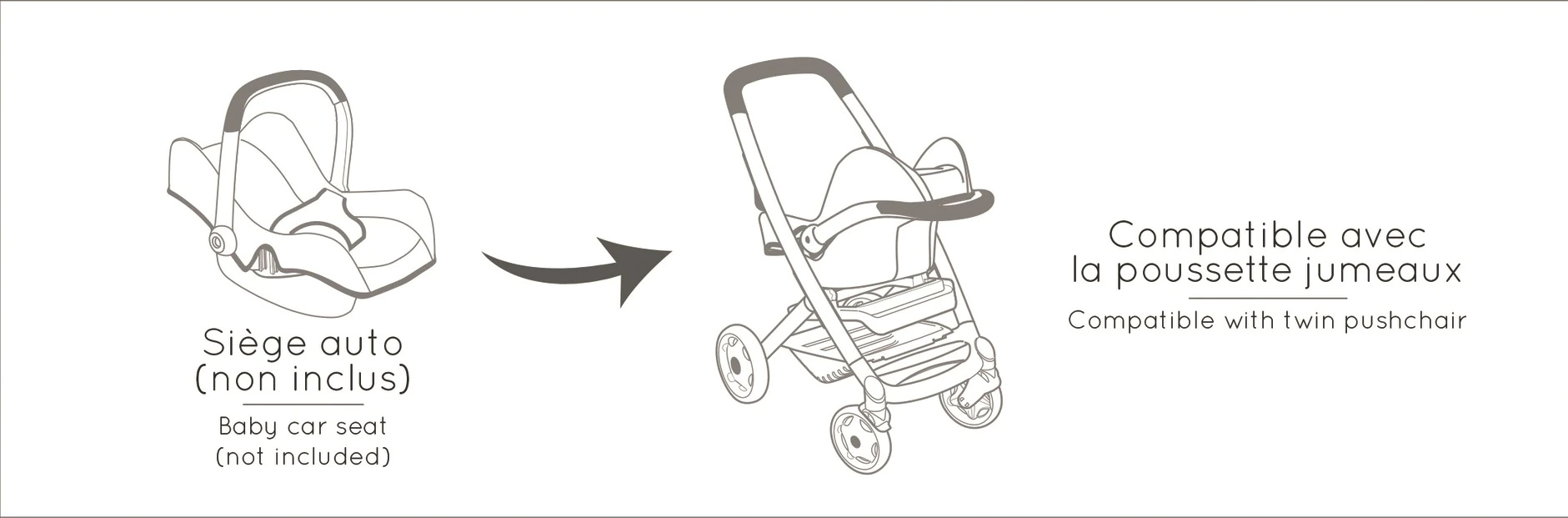 Všestranný kočárek pro panenky 3 v 1 v originálním designu Quinny. Moderní multifunkční kočárek pro panenky lze díky vyměnitelné korbičce během chvilky přestavět na praktický sportovní kočárek pro panenky. Vrchní část lze v několika jednoduchých krocích sundat a panenku s sebou vzít kamkoli půjdete v praktickém košíku.
